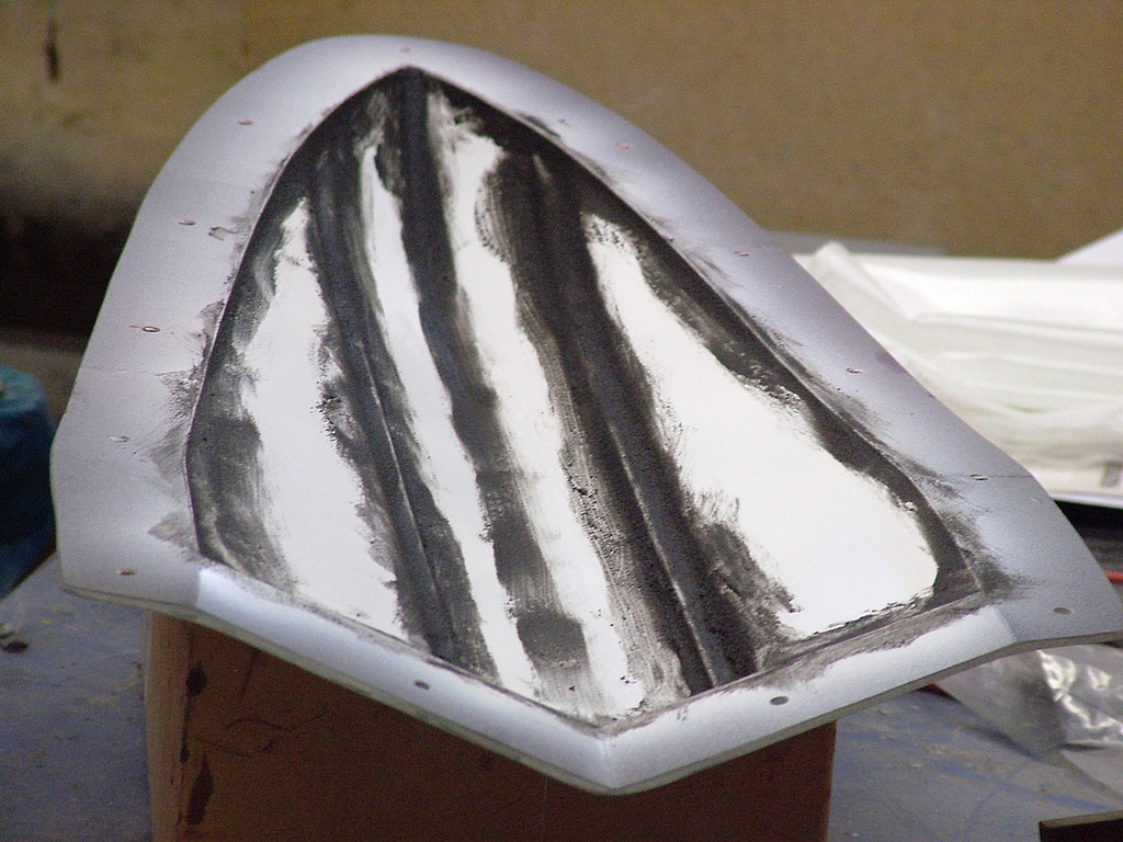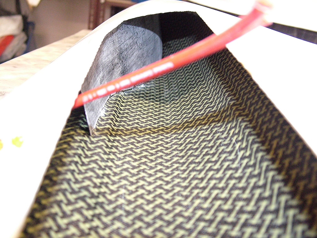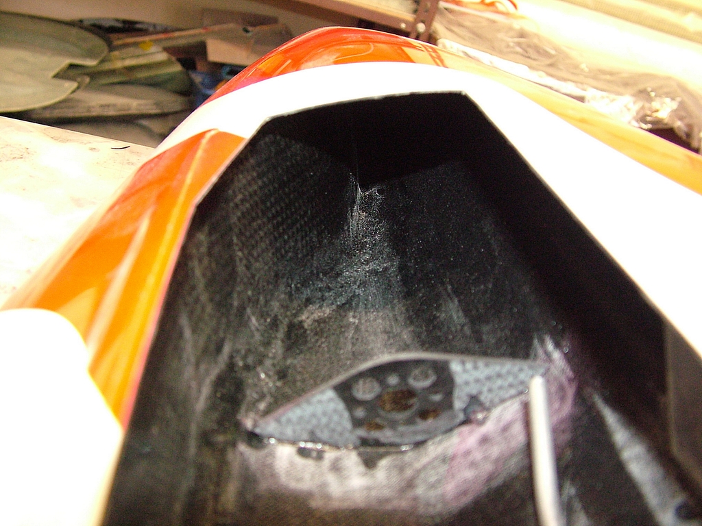 možná by bylo dobré upozornit také že na fotce polopřilepené přepážky je vidět trup s vrstvou kombinované uhlíko-aramidové tkaniny.