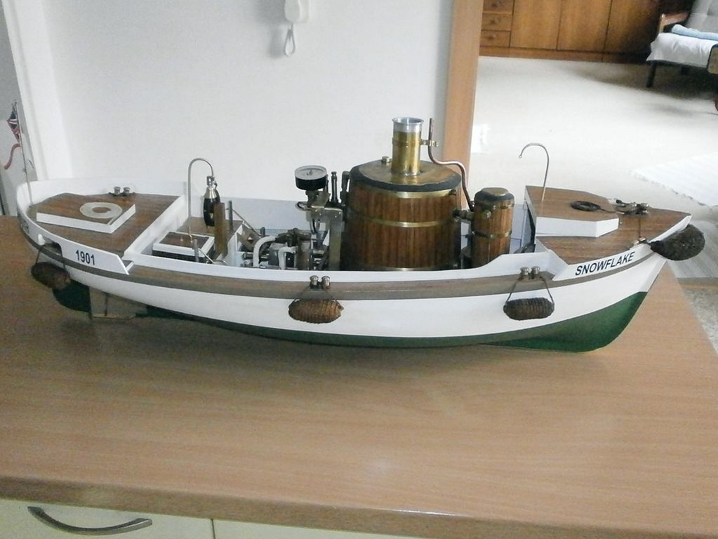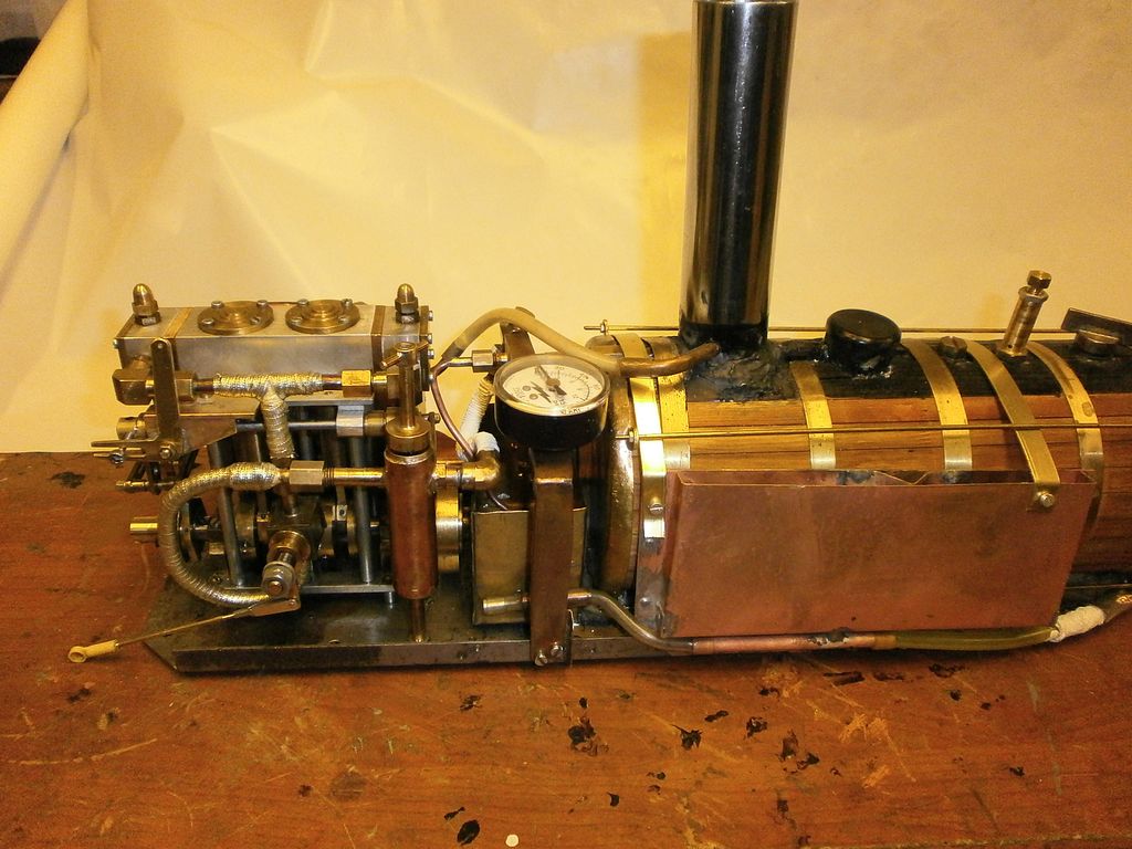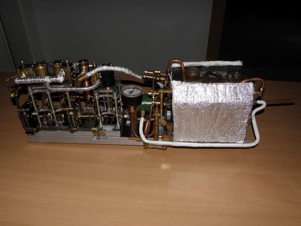 Na přidaných obrázcích jsem jen lehce naznačil, co jsem až dosud dělal - i když to snad ani nepoužiju: Nový tahač Rosegarth (hnědá lodička) - uvidíme do budoucna - plave dobře, ale momentálně mám jiné plány, kompaundní tříválec (musím změnit názvosloví z expansního na právě kompaundní) - přidal jsem prostě expansnímu dvouválci další válec a dva válce dostávají páru přímo a jejich výfuk jde do velkého válce. Popisuji to v článku, který vyjde (snad?) v dubnovém čísle RCM. Pak je tu pohled na rychloběžný strojek v Kristinině lodi Muškát - málo místa, a tak jsem musel obětovat váhu a kolem kotle jsou dvě tenké nádobky na kondenzát - viz pohled do lodi shora a poslední pohled na rekonstruovanou strojovnu se týká Bledule - lapačem kondenzátu jde trubka a v ní je unašeč šroubového hřídele - jiná možnost nebyla… Ale lodička plave taky moc pěkně.