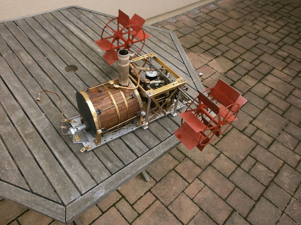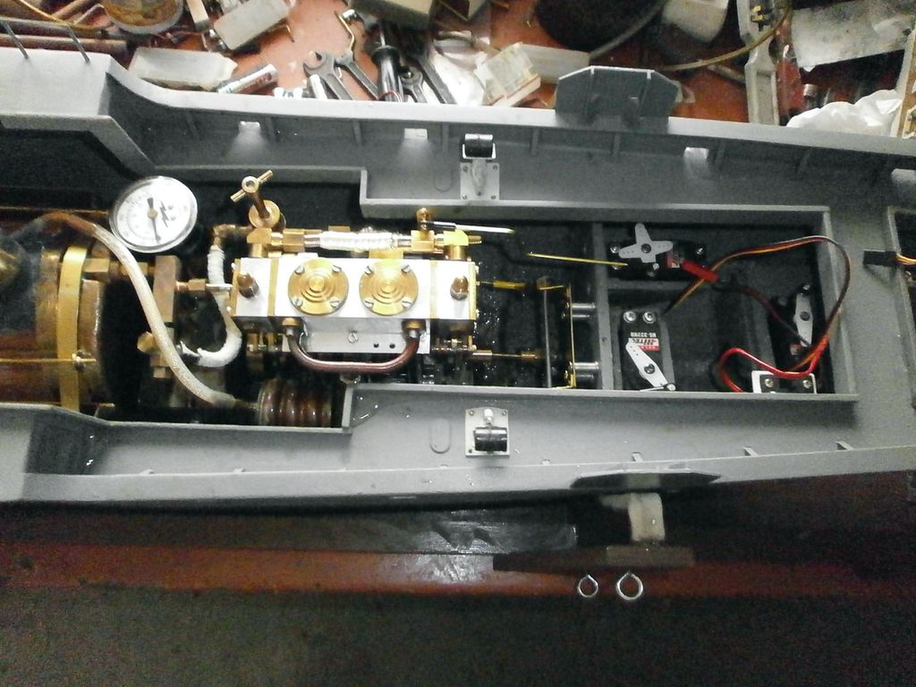 Takže jsem tuto loď osadil během léta asi 3 jinými kotli a stroji, až jsem konečně našel optimální variantu. Vždy všechno rozházet, udělat nové přívody od stroje ke kotli z mědi, a to celkem 3x... jsem blázen.