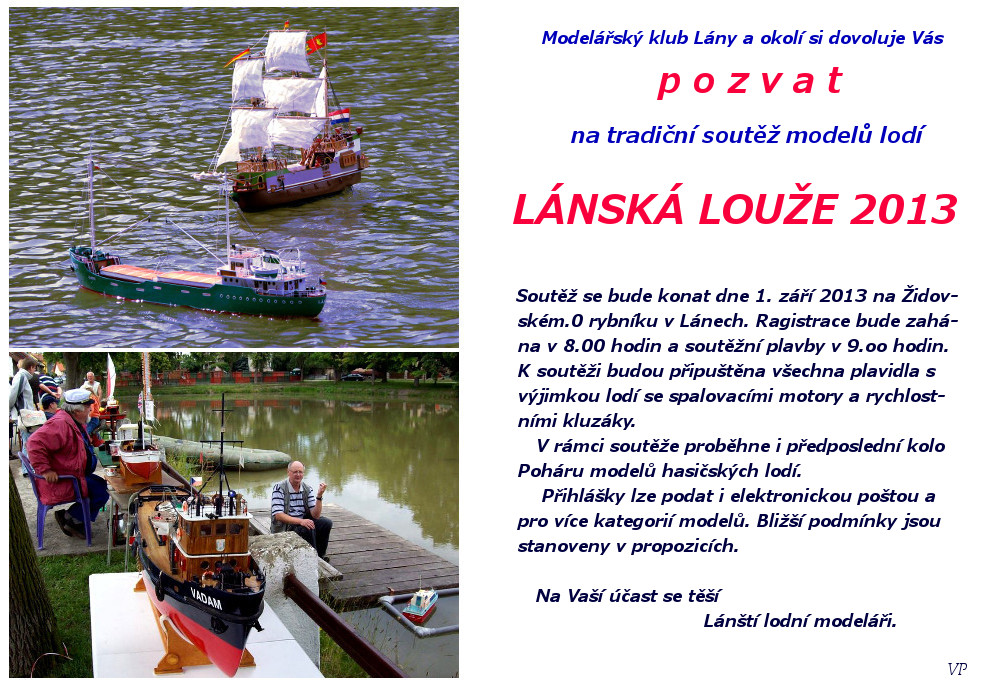 Oblíbená soutěž lánských lodních modelářů se uskuteční již popáté. Místem konání je Židovský rybník v Lánech a termínem neděle 1. září 2013 od 9:00 h. Kromě jiných kategorií dojde na předposlední kolo Poháru modelů hasičských lodí 2013.