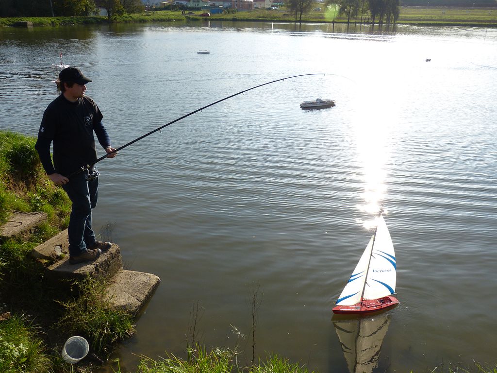 U vody je asi 50 modelářů a bezpočet diváků. Někteří místní si plnili svůj dětský sen a za popíjení z půllitru brázdili vodní hladinu s nejrůznějšími modely, jelikož hospoda měla otevřeno a slunný den přímo vybízel si sednout na její terasu. Hned na úvod mě upoutala plachetnice Bluenose, což bylo příslibem, že její stavitel Michal Medvěděv (Šurda) nebude daleko. Nebyl, ačkoli byla ve hře i možnost, že model prodal. Patří totiž k těm, kteří každé jaro představí nový model.