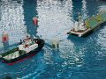 Jak jsem již avizoval v úvodním odstavci, do Mostu bylo přivezeno i několik nových remorkérů. Ivvo spustil na vodu carrousel Otaviana I. Velmi zajímavá konstrukce, ale...jak Ivvo zjistitl tento typ remorkérů vyžaduje zcela jiný styl plavby a tak nakonec raději zapřáhl osvědčené Monako I. Ante se rozhodl vyzkoušet carrousel Nemensis, ale nakonec se také rozhodl pro svého veterána Artura. Další novinkou byly dva nové remorkéry tř. Monako I. - Interrogante a Admirante. Jejich kapitáni, Jaroj a Luboš je zvětšili až těsně k hranici 70cm. Vzhledem k času který měli na stavbu odvedli skvělou práci. Zdeňkův Happy Hunter je krásnou maketou vybavenou mnoha technickými finesami, kterou už většina znás znala z posledního čísla RC Revue, ale tug towingu se účastnil poprvé. Také Tomáš se svým moc pěkně zpracovaný springerem s poetickým názvem Čochtan se přijel na „tahanici“ podívat poprvé a hned rovnou do lehkého TT a tlačných remorkérů.