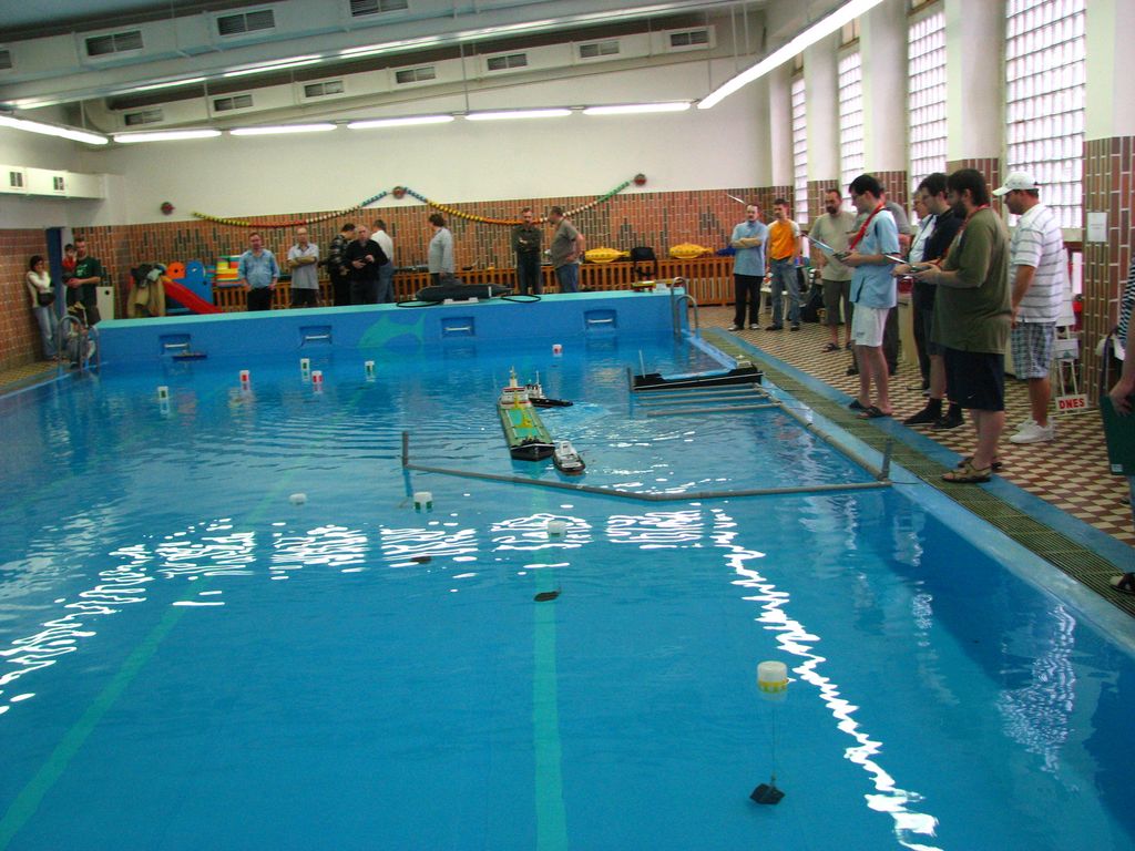 Musím trochu sebekriticky přiznat, že tentokráte jsme postavili trať, která na kapitány kladla hodně vysoké nároky. Obzvláště plavební kanál v rohu bazénu se ukázal těžší překážkou, než se nám zdála při jejím testování v Braníku. Celá trať byla hodně „točivá“. Nikdo si ovšem na ni nestěžoval ani neprotestoval. Kapitáni se na ní rozhodně nenudili.