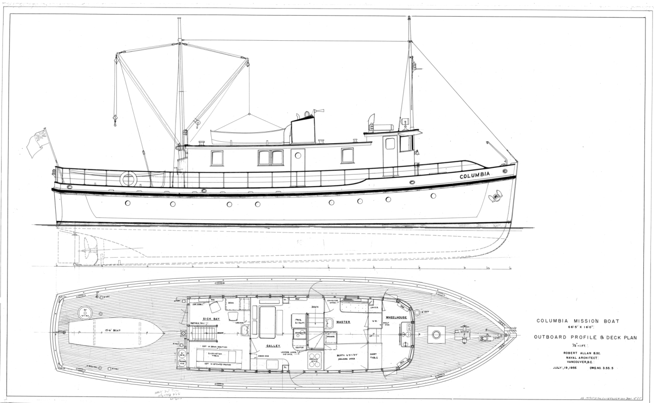Columbia III byla navržena v roce 1955 renomovaným námořním architektem Robertem Allanem z Vancouveru, BC. Byla postavena následující rok ve Star Shipyards v New Westminster, BC. Obsluhovala pobřeží Britské Kolumbie jako nemocniční loď (na palubě se kromě posádky plavil lékař a kněz) a odpovídala na tísňová volání až do roku 1968, kdy se ukázalo, že plovákové letouny uspokojují potřeby dřevorubeckých táborů a pobřežních vesnic mnohem rychleji než loď plující rychlostí 8 uzlů.