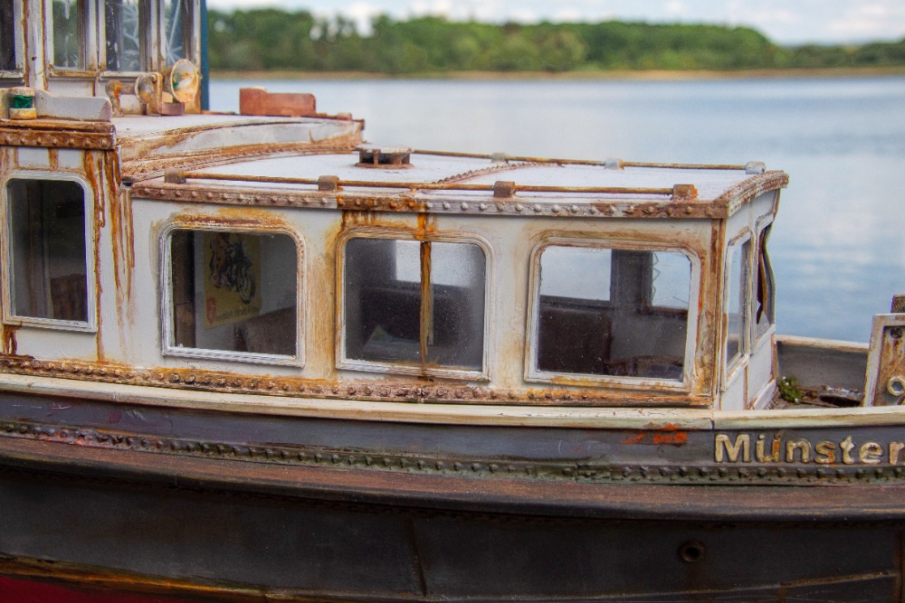 Münster, Německo 1932, model 1 : 20. Zpracováno dle původních plánů. Ovládání - motor, kormidlo, spouštění kotvy, světla a z komínku se kouří (někdy).