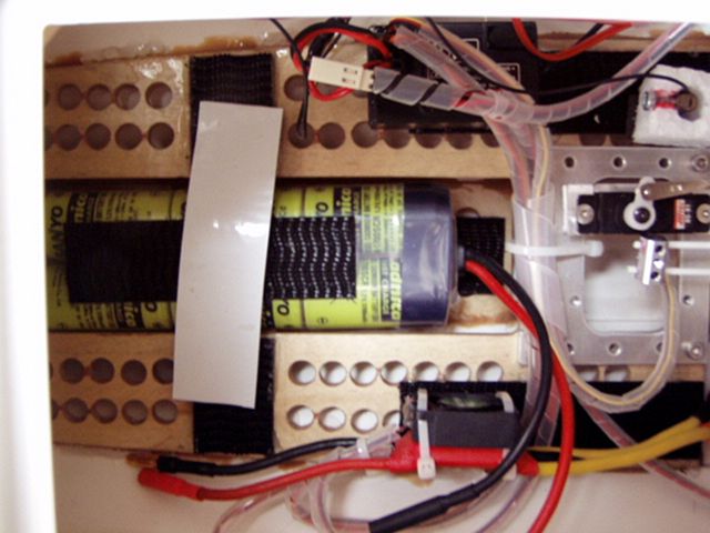 - preventivně jsem namontoval 5V ventilátory na ochlazování motoru a i ty drží na zipech M3, jeden malý odsává teplo z regulátoru. Je to však celkem zbytečné, motory jsou sotva vlažné, regulátor taky a akumulátor lze udržet v ruce. Vzduch v lodi koluje dostatečně. Je to spíše taková machrovinka, zkrátka jsem je uviděl v prodejně a koupil. Ventilátory i světýlka jsou napájeny z přijímače.