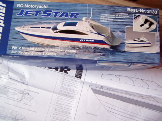 Měl sem postavenu jachtu Hole 10, ale tu sem prodal k vůli její velikosti i touze po něčem novém a trochu menším. Proto jsem si pořídil v březnu 2007 stavebnici jachty Jet Star (trysková hvězda) od firmy Graupner. Jachta mě zaujala již dávno přesto jsem chvíli přemýšlel co pořídit, přeci jen se rozmýšlelo o nové jachtě a ne o potopeném rezavém křižníku. Líbí se mi její jednoduchý elegantní vzhled a zejména zajímavý pohon dvojicí vodních trysek-JET. Stavebnici a jety mi ochotně a bleskurychle objednal Pavel z ostravské prodejny SCZ. Po týdnu od objednávky jsem jedno odpoledne po práci odjížděl s krabicí napůl nacpanou v krosně domů. V MHD jsem byl středem zvědavých očí občanů.