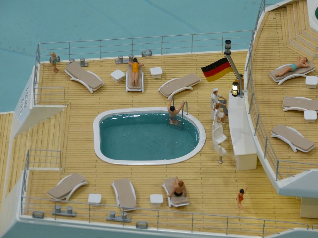 Snad právě proto se mezi českými lodními modeláři nenašel jedinec, který by si vzal na hrb dění u bazénu, a tak bylo vše na lodních modelářích z německých klubů Interessen Gemeinschaft Schiffsmodellbau Markt Schwaben a RC-IGS-Weissblau. Myslím, že se své role zhostili dobře, byť by vodní plocha snesla větší rej.