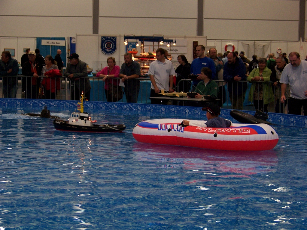 Jinak co se týká vlastní výstavy. Mohu potvrdit co píše Ladous - nákup materiálu nebo nějakých součástí na lodi nebyl téměř možný. Jen několik drobností typu lišt od firmy Raboesch. Pokud člověk chtěl nějaké vystavené díly na lodě, byl zde pouze odkaz na internetovské stránky, kde bylo možno si toto objednat. U bazénu jsem byl také několikrát, viděl jsem ukázku tažení ropné plošiny a nějaké záchranné práce kolem toho. K vidění byly i nové lodě oproti loňsku. Jednou z nových lodí byl Fair Play 21 od Andrého z Německa. Ten ještě loni jezdil s Pacific Buccaneer.