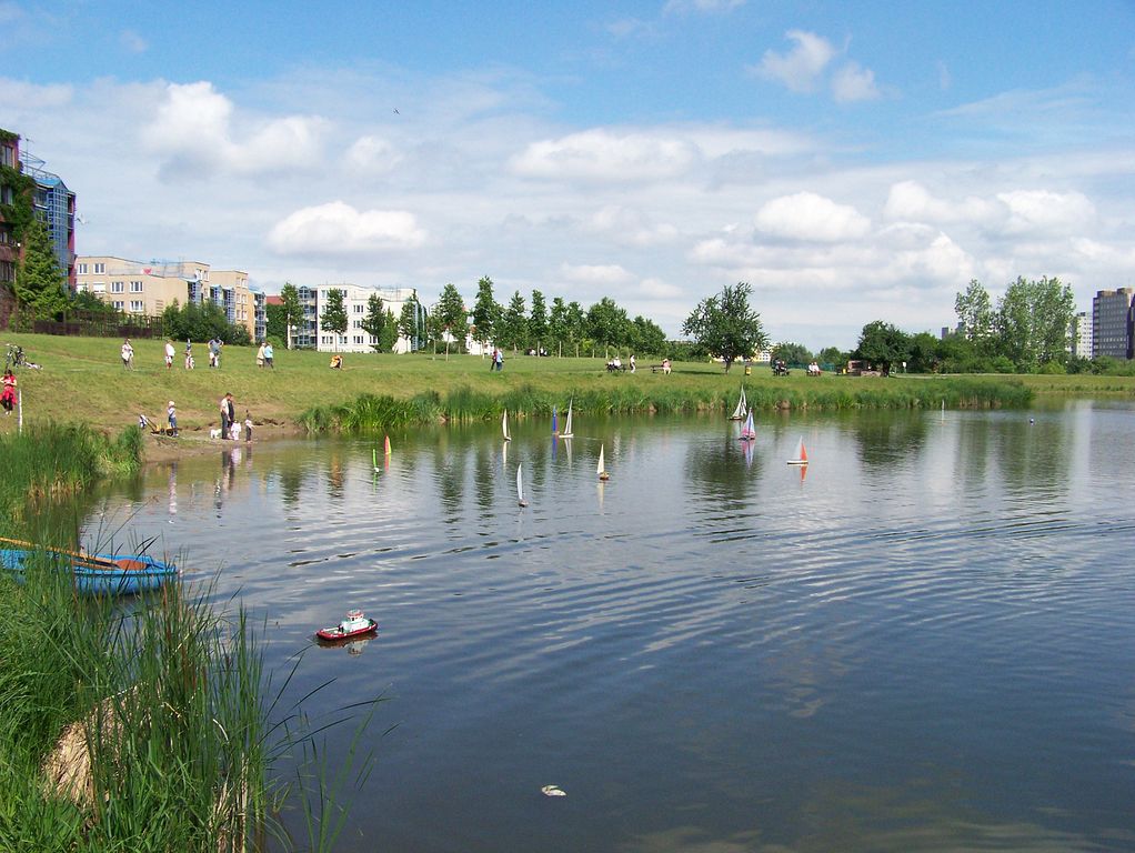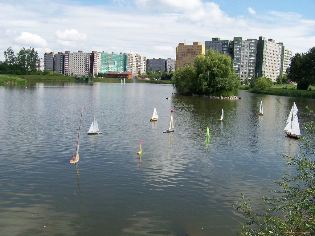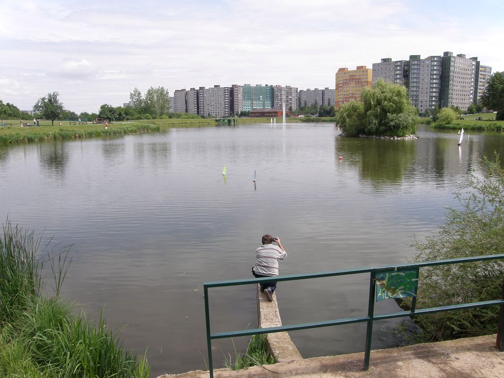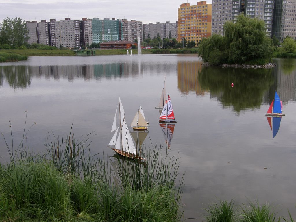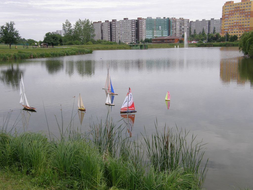 Lodní modeláři s chutí využijí vše. Zaberou důchodcům lavičky a přes informační cedulku o unikátní přírodní ploše si klidně hodí kolíčkovou tabuli.