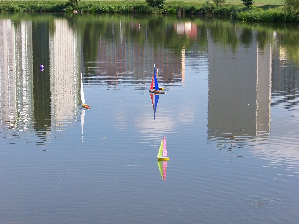 Díky vrbě a vyšší trávě se z pětimetrového ostrova stala překážka, kvůli které museli všichni občas popoběhnout. Nejvíce se naběhal asi Karlík, jehož Pen Duick umí slabý vánek maximálně využít, a tak Ante nestačil čárkovat. Nakonec z toho bylo za celé odpoledne úžasných 18 kol, čímž všechny ostatní nechal daleko za sebou. Kupříkladu moje Legend, která jen díky tomu, že jiní neabsolvovali všechny tři jízdy, s 11 koly obsadila druhé místo, přičemž mým hlavním soupeřem byl Keba s White Witch, který kvůli časové tísni před závěrečnou regatou musel odejít z jistého třetího, ale spíše z velmi pravděpodobného druhého místa.