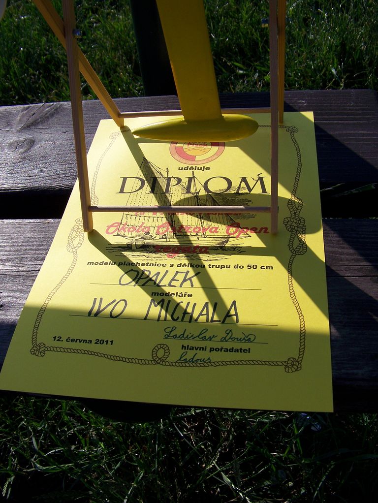 Jelikož poměřovat plachetnice jen podle ujetých kol je nesmysl, rozdělili jsme letos přítomné modely podle délky trupu na dvě kategorie, a to do 50 cm a nad 50 cm, neboť dělením podle oplachtění bychom si příliš nepomohli, když oplachtění NSS-B měly jenom Footy a Pen Duick. Podle uvedeného dělení se nám sešly tři malé a deset větších modelů, takže každý si mohl najít svého soupeře. Bylo zajímavé sledovat souboj mezi Opalky a Footy, kdy jeden Opalek stíhal druhého. Jen Footy se dopředu moc nehrnula a v závěrečné regatě RomanT po půlhodinovém boji poblíž první bójky zamířil zpět na start.