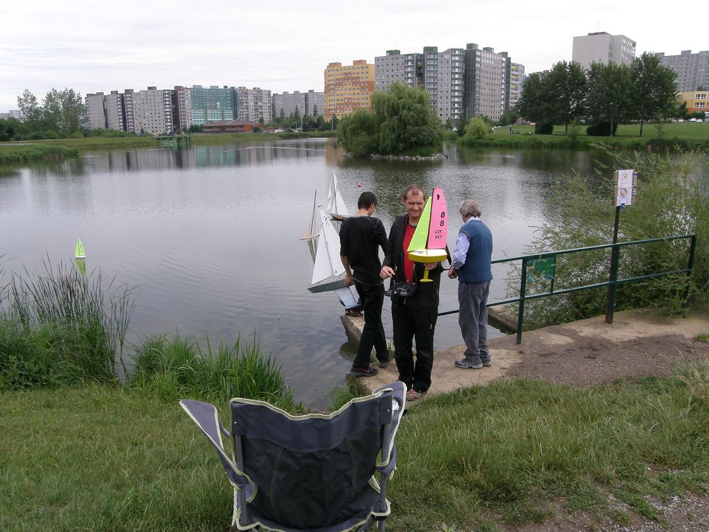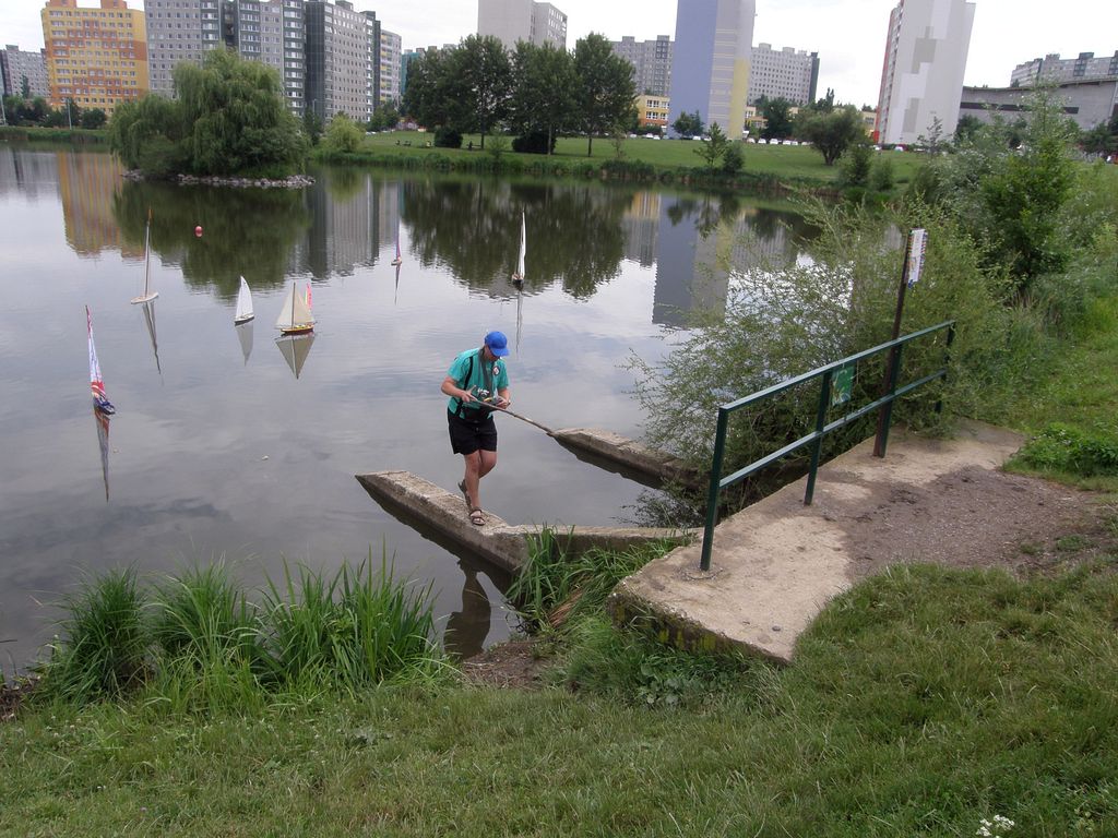 O obsluhu svážecí pramice se staral Nojby, avšak až na pár výjimek nebylo jeho nasazení potřeba, což je koneckonců dobře. Co se týče přístupu do vody, je na Horní nádrži poněkud krkolomný, a tak řada z nás se svými modely setrvávala na vodní hladině i během přestávek, přičemž jsme rozložili ležení u přítoku, abychom to neměli daleko.