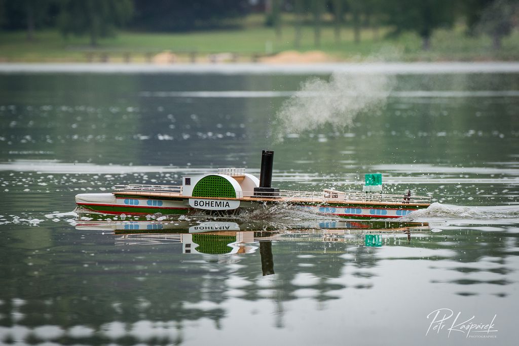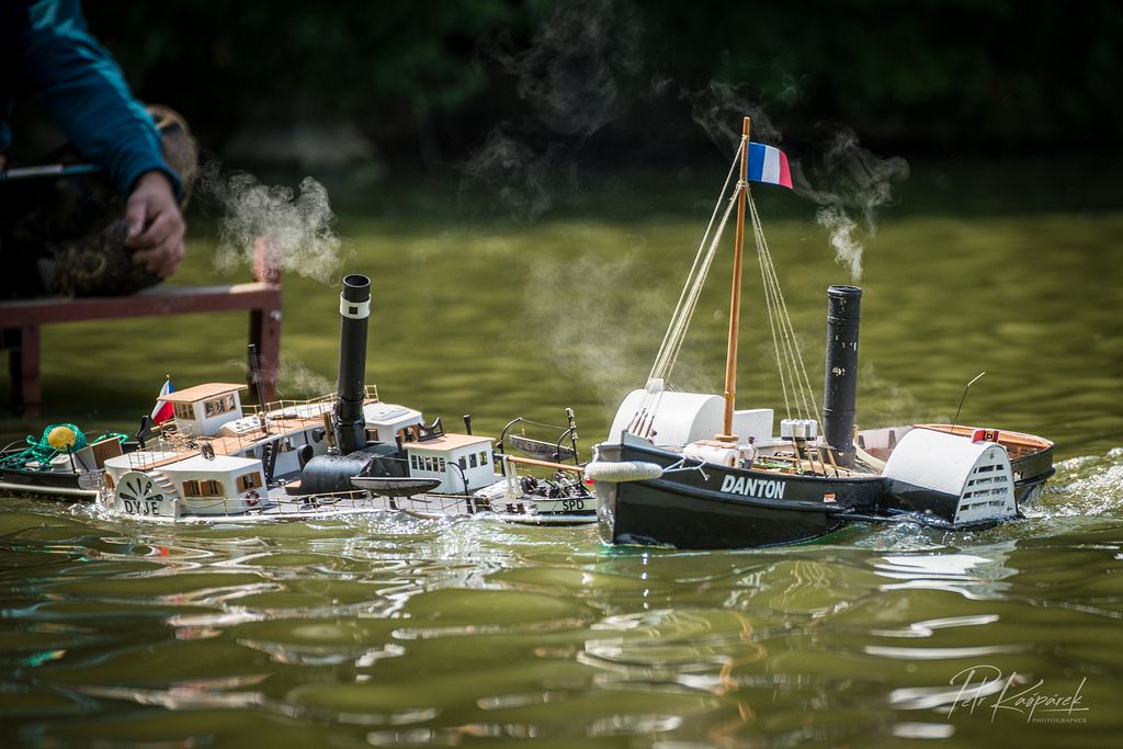 Po polední pauze následovaly hromadné starty vytrvalostních závodů. Nejprve kolesových parníků, které se daly do pohybu jen tři. Po čtvrthodinovém klání zvítězil Danton Petra Stejskala.