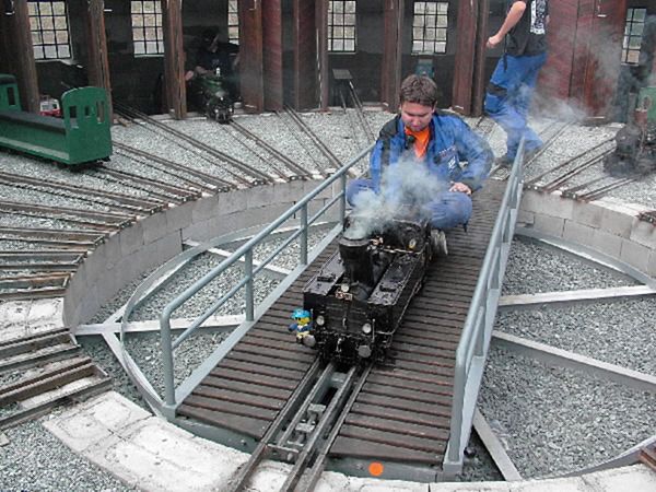 Přijeli modeláři z Rakouska, Německa, Anglie, Slovinska (?) a samozřejmě naši. Vystaveny byly hlavně parní lokomotivy, ale také motorové a elektrické. Zaujala mne nákladní souprava vedená elektrickou lokomotivou řady 94, kterou řídil modelář RC soupravou 2,4 GHz, vezoucí se na posledním voze soupravy.