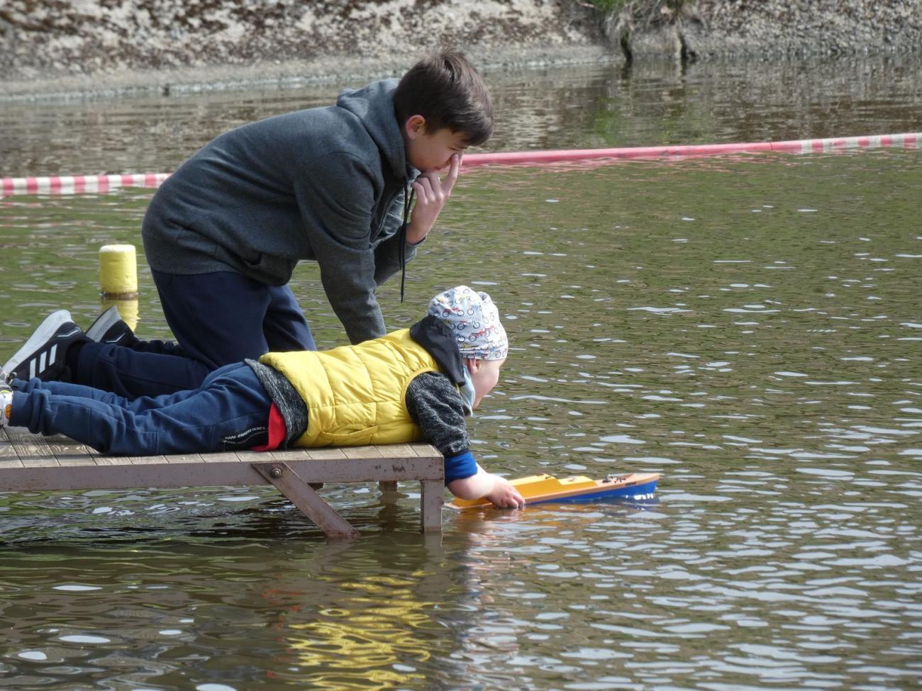 Pokud začínající modelářské ratolesti zrovna nesoutěží s EX500, mohou vybít energii na přilehlém dětském hřišti... Sám jsem jí vybil pouhým sezením u vody, přičemž doposud kroutím hlavou nad tím, jak se mi povedlo při kolizi s jinou plachetnicí přijít o stěžeň.