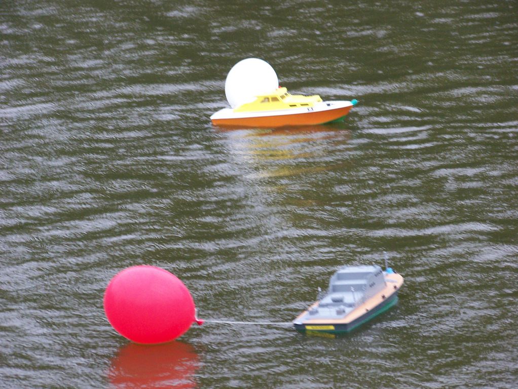 Byl jsem vyslán s první skupinou. Začal jsem docela nadějně, když jsem jako první propíchl cizí balónek. Záhy jsem sám dostal zásah a musel z vody. Obdobně probíhaly souboje dalších dvou skupin, aby se tři nejlepší dostali do finále. To se ukázalo jako nekonečné, neboť jeden z modelů přišel o svůj špendlík a druhý byl neovladatelný. Po povolených servisních úkonech zbytek finále proběhl bleskově.