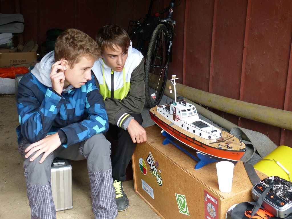 Na jízdy seniorů došlo až v odpoledních hodinách, takže mi mezitím přišla k duhu obědová klobása od pořadatele (startovné bylo symbolické a stěží pokrylo náklady). Během jízdy se Springerem jsem odrážel dotazy, zda model vůbec jízdu dokončí, když vypadá, že se s každou další vlnou změní v ponorku, ale v útrobách trupu bylo po jízdě jen pár kapek. Zkrátka má větší ponor než všelijaké Leadery, z jejichž útrob někteří junioři vylévali vody mnohem více.
