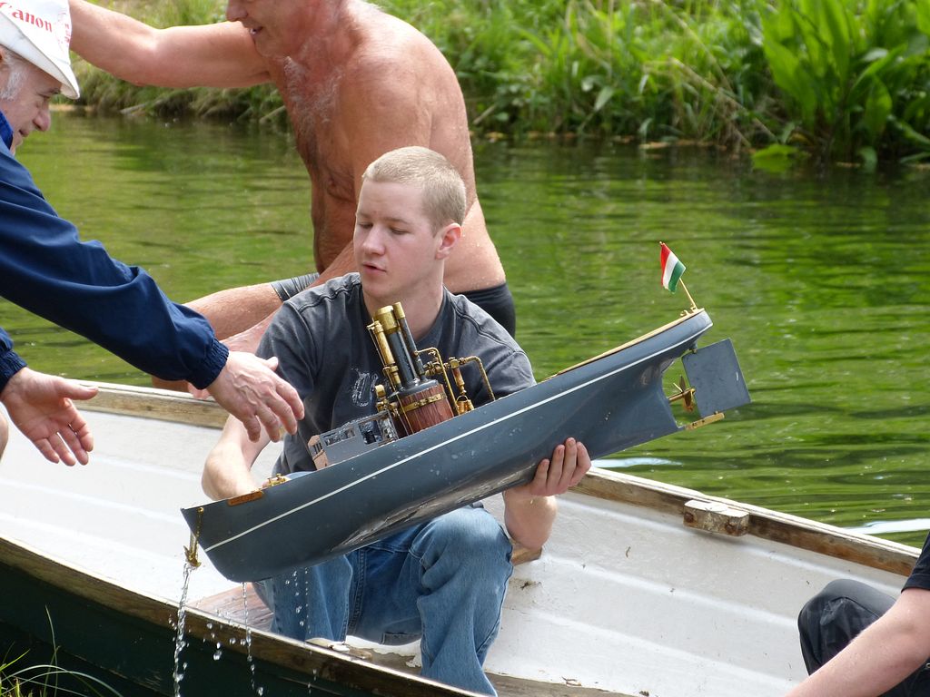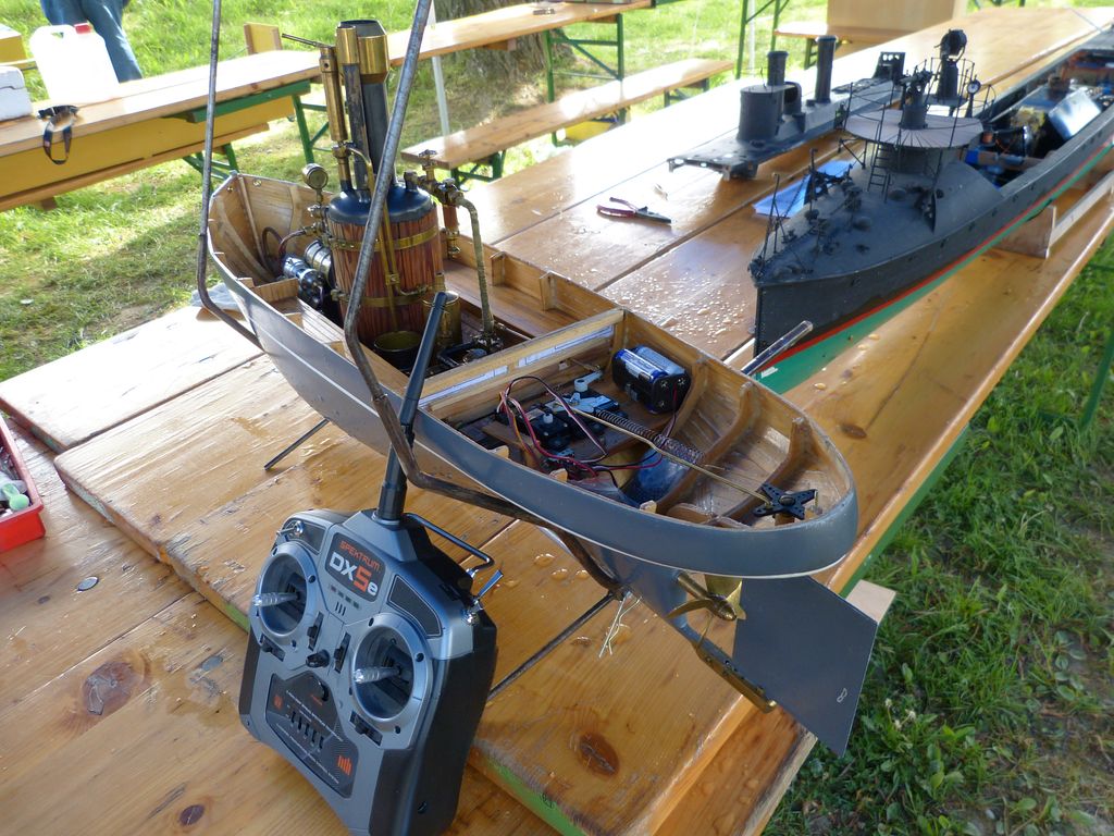 Půlhodinový závod byl po této nepříjemnosti odložen na později jako poslední bod sobotního programu u vody. Pak se na nebi začala objevovat temná mračna, až to vypadalo, že repete bude v dešti. To se naštěstí nepotvrdilo, a tak mohlo dojít k druhému pokusu, tentokráte s menším počtem startujících, neboť majitel krátce potopeného modelu do stejné vřavy podruhé vyplout nechtěl.