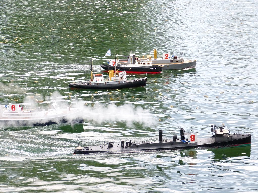 Půlhodinový závod je něčím, co se u nás nevidí. Na Vyžlovce máme problém dostat na vodu tři parníky naráz alespoň na několikaminutový okruh. Díky přepočtům délky trupu v Rakousku nemusí zvítězit nejrychlejší model, a tak měla naše zem mnoho želízek v ohni: Tomáš Kočí (K147), Mirek Šrámek (Renown) a Jiří Voráček (Petropavlovsk). To by v tom byl čert, aby zbylým čtyřem modelům neuzmuli nějakou medaili. První minuty se vyvíjely slibně, avšak na vodě to vypadalo jako na autodromu, jak o sebe modely ťukaly.