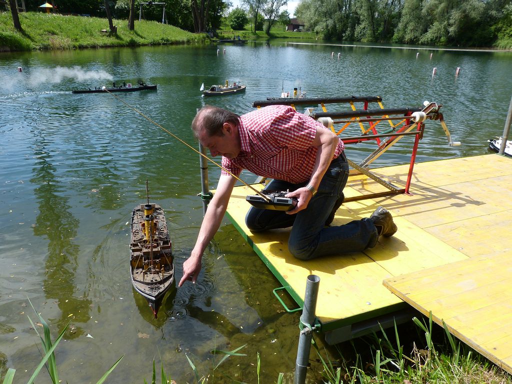 Bylo zajímavé sledovat, jak se pořadatelé poperou s tolika parníky na vodě. Prvním krokem bylo modely očíslovat, druhým přiřadit každému samostatného zapisovatele okruhů. (A nejlépe ještě ke každému kontrolora, abychom se dostali k Horníčkovo známému výroku: „Má-li každý člověk dvě babičky, je na světě dvakrát více babiček než lidí.“ Alespoň tak mi to při pohledu na personální zajištění připadalo![]()