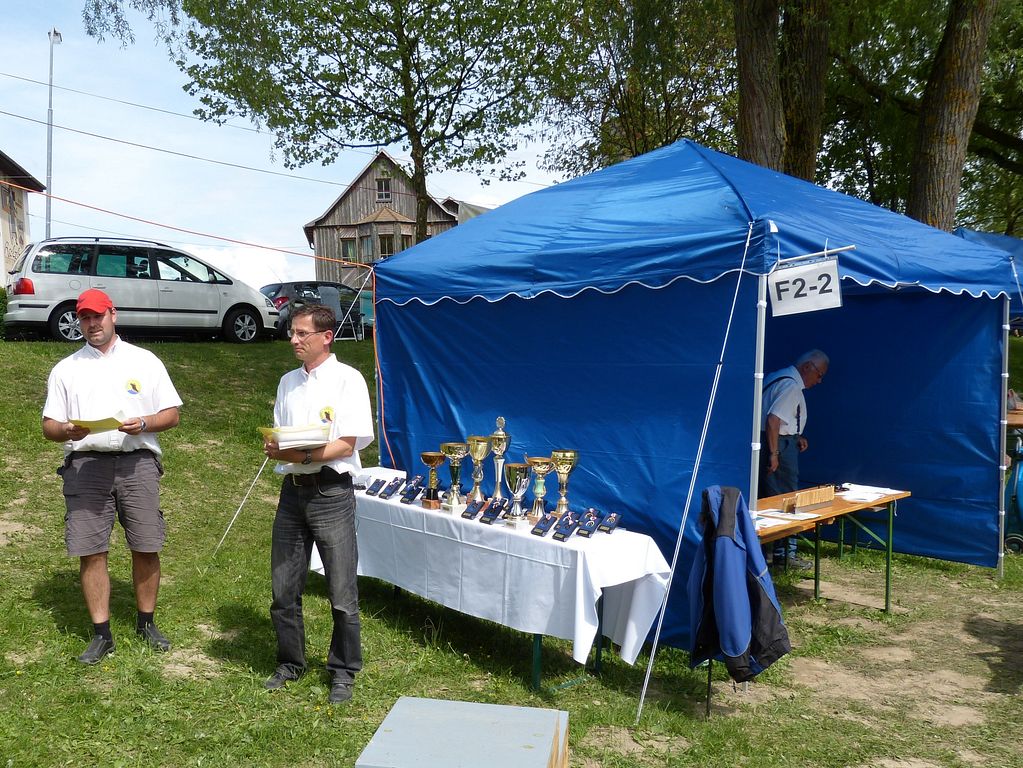 Po půlhodinovce nastal čas se rozhodnout, zda setrvám až do neděle. I přejel jsem s autem z parkoviště do přilehlého kempu a zaplatil si jeden nocleh. Na večer pořadatelé zamluvili stoly v jedné z místních restaurací, a tak jsem se s deštníkem v ruce připojil k přítomným Jihočechům, kteří z minulých ročníků cestu k hospodě znali. Uvnitř sálu se uskutečnilo slavnostní vyhlášení Austria Cupu 2011, proběhla tombola a nějaké společenské hry. K večeři bylo na výběr ze čtyř jídel, obsluha byla na sto modelářů připravená, a to v dalším sále probíhala nějaká jiná soukromá akce.