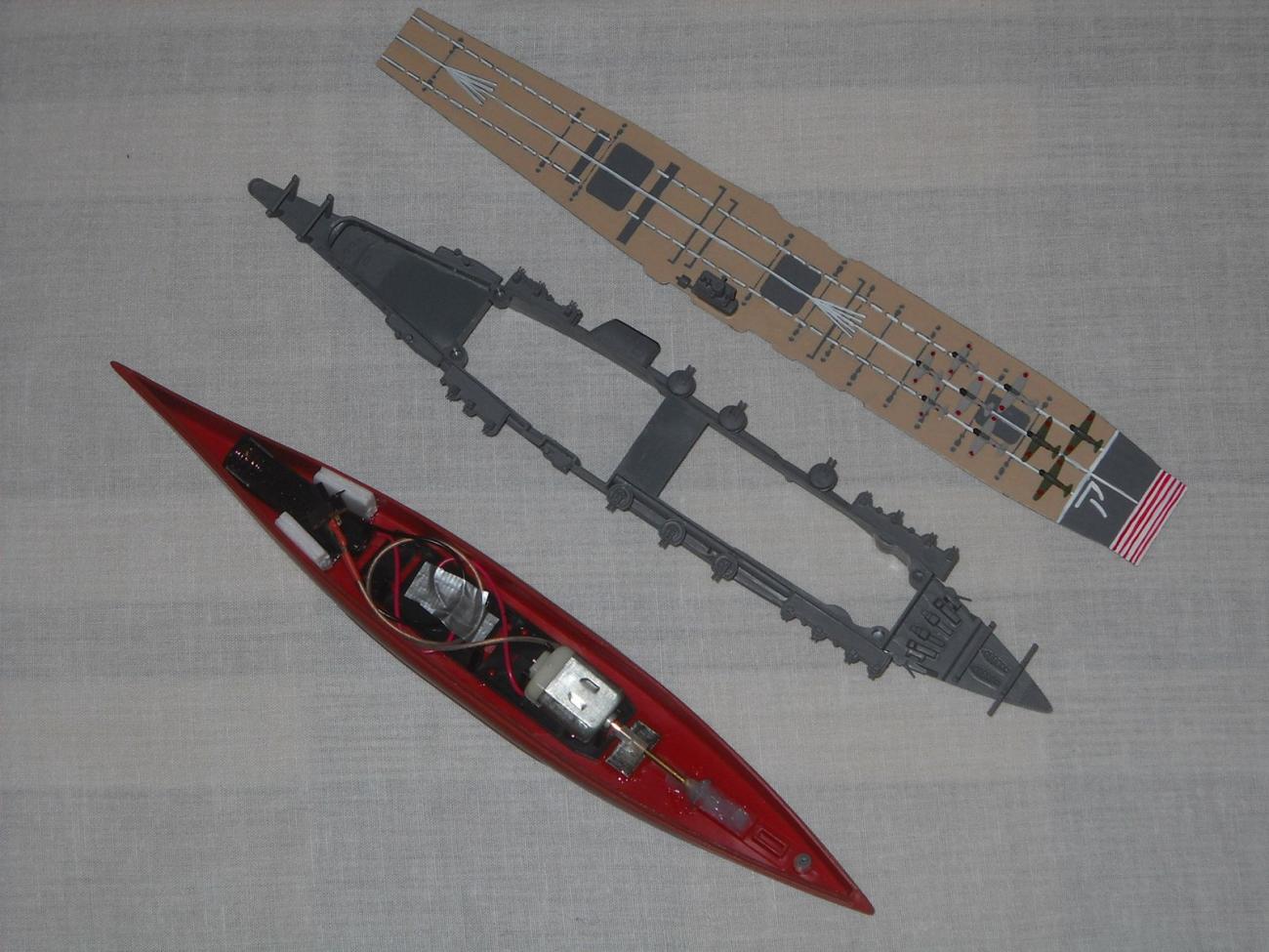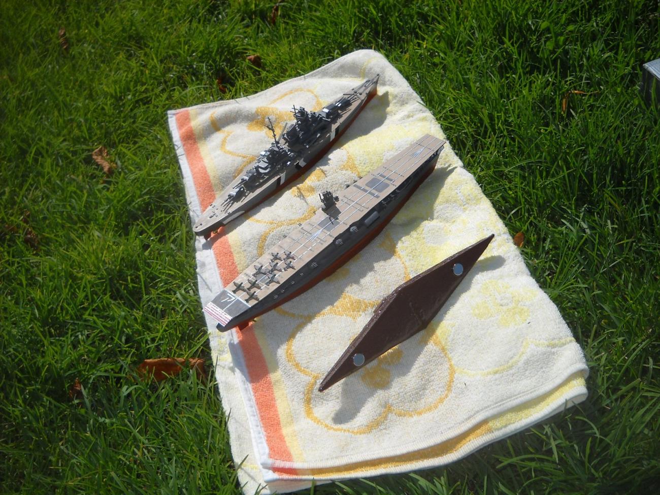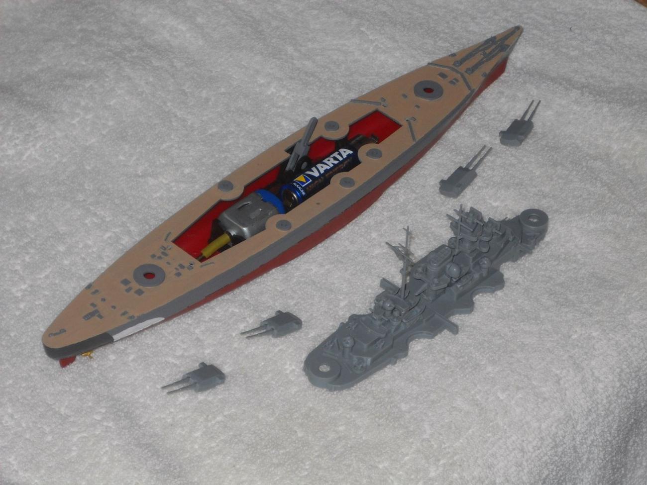 V obou případech šlo také o plastikové stavebnice (Bismarck od Academy, Akagi od Marui), ovšem spíše hračky než seriózní modely. Již od výrobce koncipované jako volně plovoucí a obsahující pro ten účel všechny potřebné díly. A to je právě pro mě zajímavé, protože mě dostatečně neuspokojují čistě statické modely, ale dávám přednost modelům funkčním, především RC. I zde by bylo jistě zajímavé postavit modely jako řiditelné, ale vzhledem k rozměrům (oboje délka cca 30 cm) by to pro mě byla značná výzva. Raději jsem se tedy rozhodl nekomplikovat si život a zůstat pouze u volně plovoucí verze.