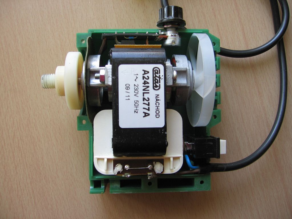 Regulátor přerušuje přívodní fázi za vypínačem. Je třeba dodržet L1 vstup a L2 výstup. Proto jsem musel vyměnit napájecí šňůru, abych měl pro regulátor přívodní fázi vždy na stejném vodiči. Jedná se o jednoduchý regulátor otáček, ale pracuje dobře.