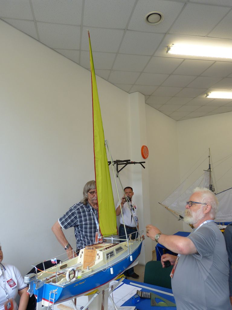 Mezi nimi jsem byl i já a můj trimaran Volans. Těch se na místě sešlo více, a to tři. Veškeré bodování spočívalo v prolistování návodu a udělení 40 bodů (jednotně všem třem modelům), takže aniž bych to byl více postřehl, měl jsem model obodovaný.