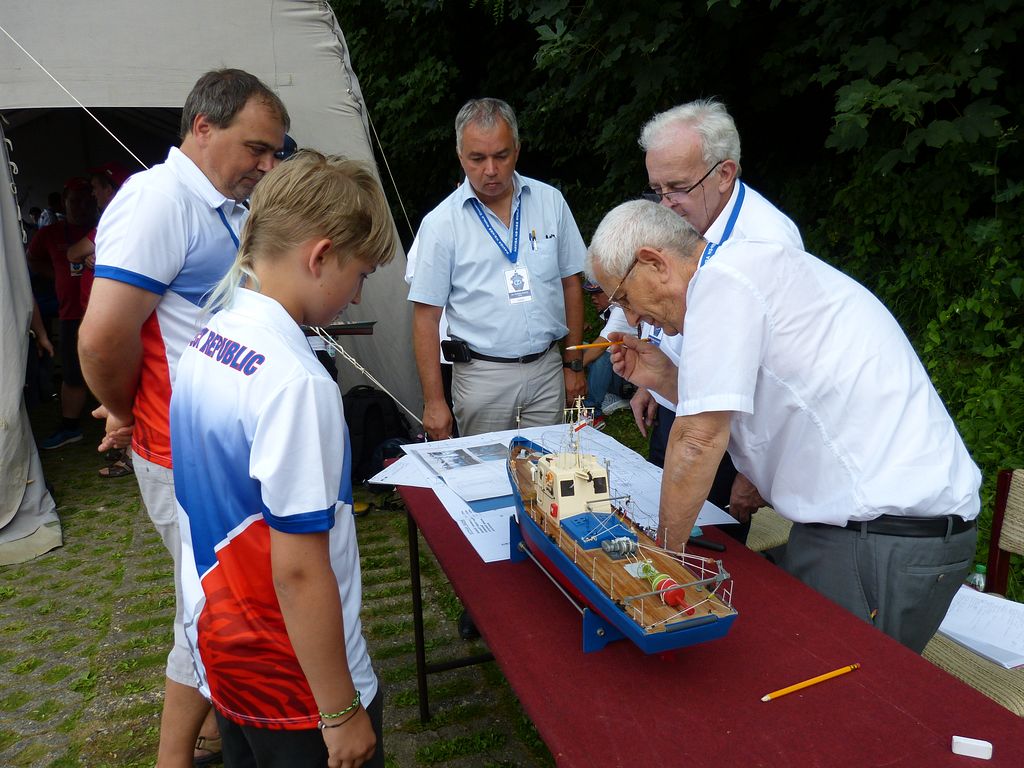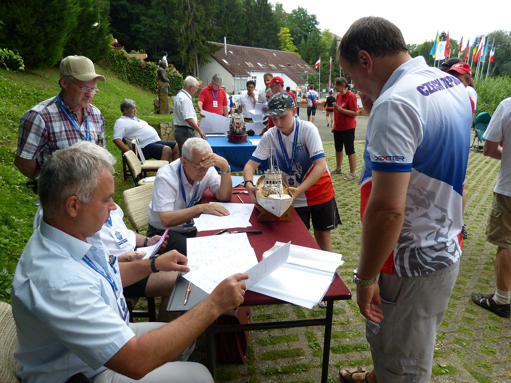 Bodování modelů plachetnic NSS-A se protáhlo přes celé odpoledne až do večerních hodin. Nedovedu si představit, jak dlouho by trvalo, kdyby česko-německo-polská komise rozhodčích vzala k ruce ještě metr a jala se všem přeměřovat plachty.
