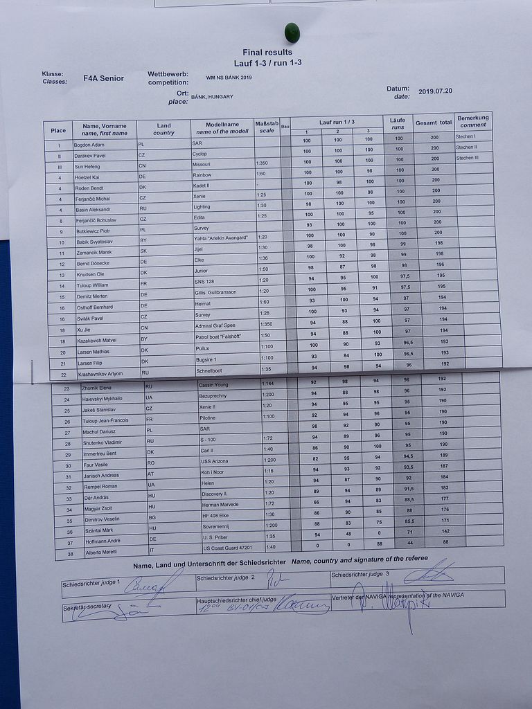V sobotu 20. 7. 2019 dopoledne proběhla druhá jízda parníků F-DS, ve které jsem využil svážecí člun poté, co jsem trať nedojel. Ostatní čeští závodníci si vedli lépe, přesto se veškerá pozornost upírala k poslední jízdě F4A Senior, kde měla česká výprava po 2 jízdách nejvíce nadějí.