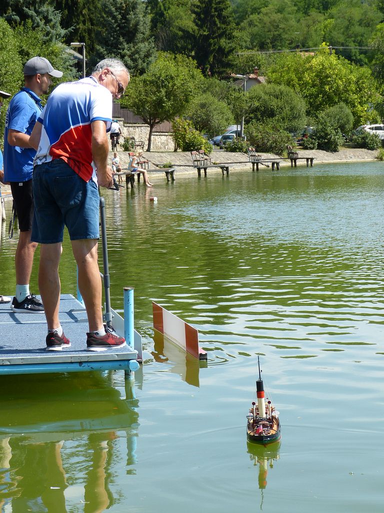 Na závěr si dovolím pár vět ke klání parníků F-DS. Bylo zajímavé, bohužel nedopadlo dobře pro české barvy. Můj Tollmann selhal metr před dokem kvůli zhasnutému hořáku a Jonáši Podrazilovi došel plyn. Francouzský modelář Michel Hainneville si vynutil opakování dokovacího manévru, jelikož při prvním pokusu neměl nastavenou správnou šířku. Stejně mu to nepomohlo k lepšímu než třetímu místu.
