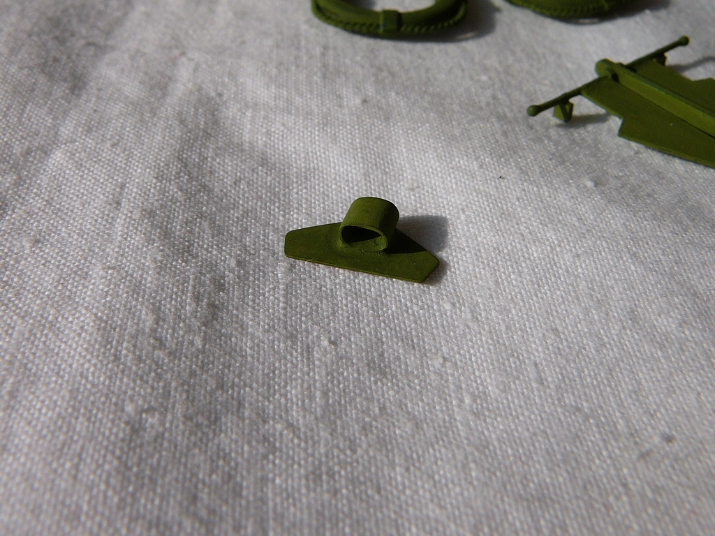 Po definitivním umístění palubních doplňků a torpéd zbývalo ještě napevno osadit příďové kanóny a raketomety. Ještě jsem se rozhodl doplnit záchranné kruhy, příďový průvlak a kotvu (Obr. 65, Obr. 66, Obr. 67 a Obr. 68).
