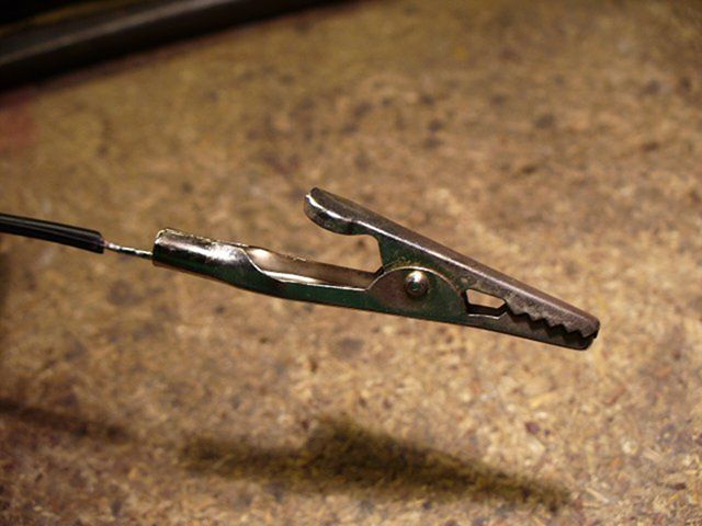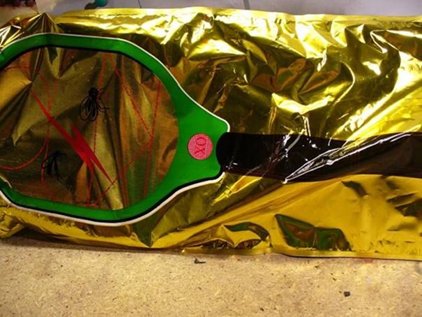 lepidlem a jedním šroubkem. Na držadlo jsem namotal jeden ze stříbrných drátků, které vedli do plácačky.