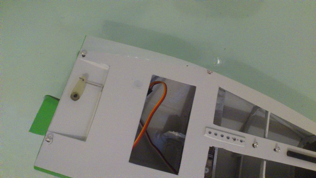Na ovládání jsem použil 9g servo na kormidlo a na napínání plachet servo GWS o tahu 3 kg a váze 19 g. Na páku serva jsem nalepil epoxidem laminátovou páku o délce cca 60 mm, která tahá otěže plachet, přes průvlak z ohnuté mosazné trubičky.