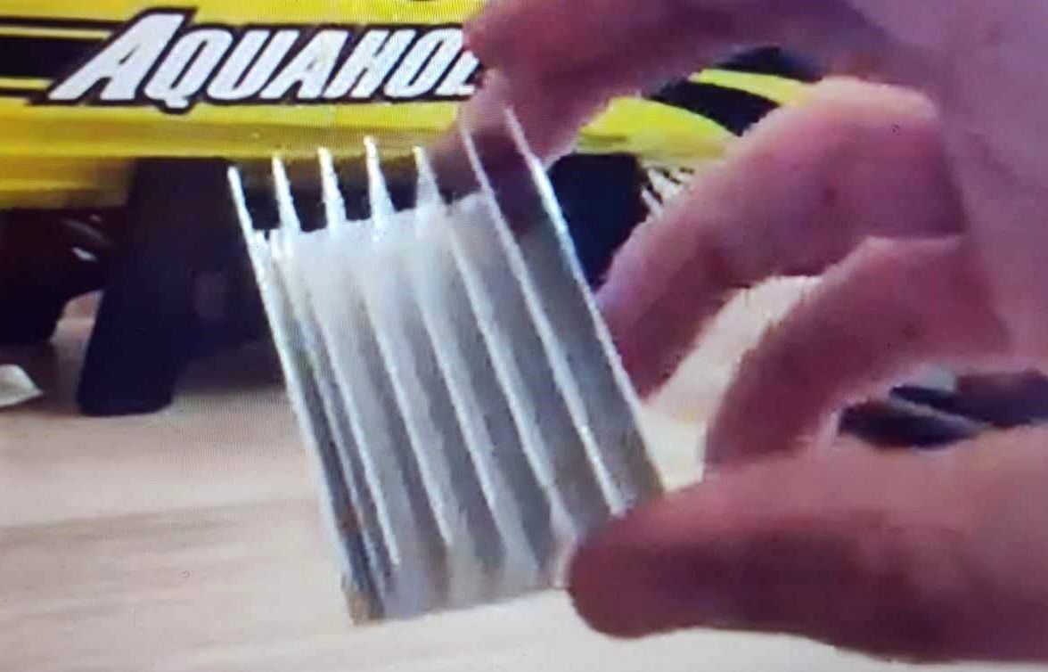 Po otevření lodi jsem si vyřízl otvor ze spodní strany duté kabiny. Dále jsem vyřízl otvor s kresbou čelního skla, kde měla být původně kamera. A další otvor pro chladič video vysílače. A na závěr pak vyvrtání otvoru pro anténu právě zmiňovaného video vysílače. Chlazení jsem navrhl zejména proto, že za letních tropických dní, kdy teploty atakují hranici 30 °C ve stínu a vysílač sám hřeje, navíc vše je uzavřené v kabině, kde není žádné odvětrávání, takže může dojít snadno k přehřátí. Hliníková žebrovaná destička vede teplo velice dobře a nepodléhá korozi. Ta je do otvoru vlepená lepidlem na mobilní telefony B7000, protože po zaschnutí je lepidlo tepelně odolné, vodě odolné a zachovává si určitou pružnost. Abych tento efekt odvádění tepla ještě umocnil, využil jsem silikonové tepelně vodivé oboustranné pásky která vysílač navíc udrží na svém místě. Dále jsem vše potřel tepelně vodivou pastou, která je pro obvody nevodivá a používá se k chlazení procesorů v PC.
