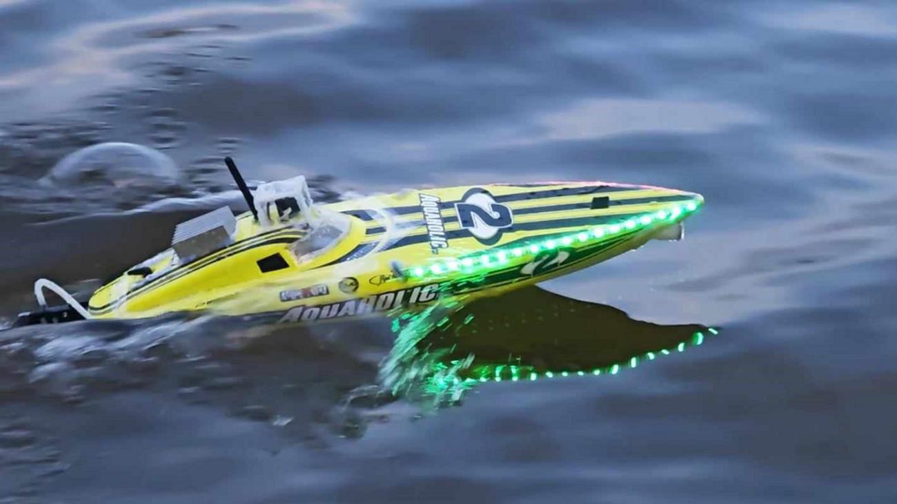 Lepidlo je tepelně odolné, voděodolné a po zaschnutí si zanechává pružnost. Poté jsem LED pásky zalepil páskou se skelným vláknem. A kraje lepící pásky jsou ještě jednou zalepené lepidlem. Na prodloužení přívodního kabelu jsem využil drátky k servokonektorům. Na konci jsem oba dva prodloužené LED pásky spojil vyrobeným Y kabelem. Pro zapnutí a vypnutí světel jsem musel využít ještě jeden 20A regulátor, tentokrát stejnosměrný, který je zapojen v přijímači avšak bez plusového pinu.