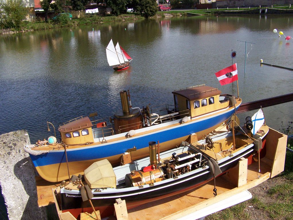 V případě modelů parníků dostává testování vhodné pohonné sestavy lodní šroub - motor nový rozměr, kdy se proudová spotřeba elektromotorů nahradí spotřebou páry, objemem kotle a celkovou hmotností strojovny. Výtlak lodního trupu rázem získává na důležitosti. Takže vznikají dobré strojovny, které se do modelu nevejdou, anebo je neuveze.