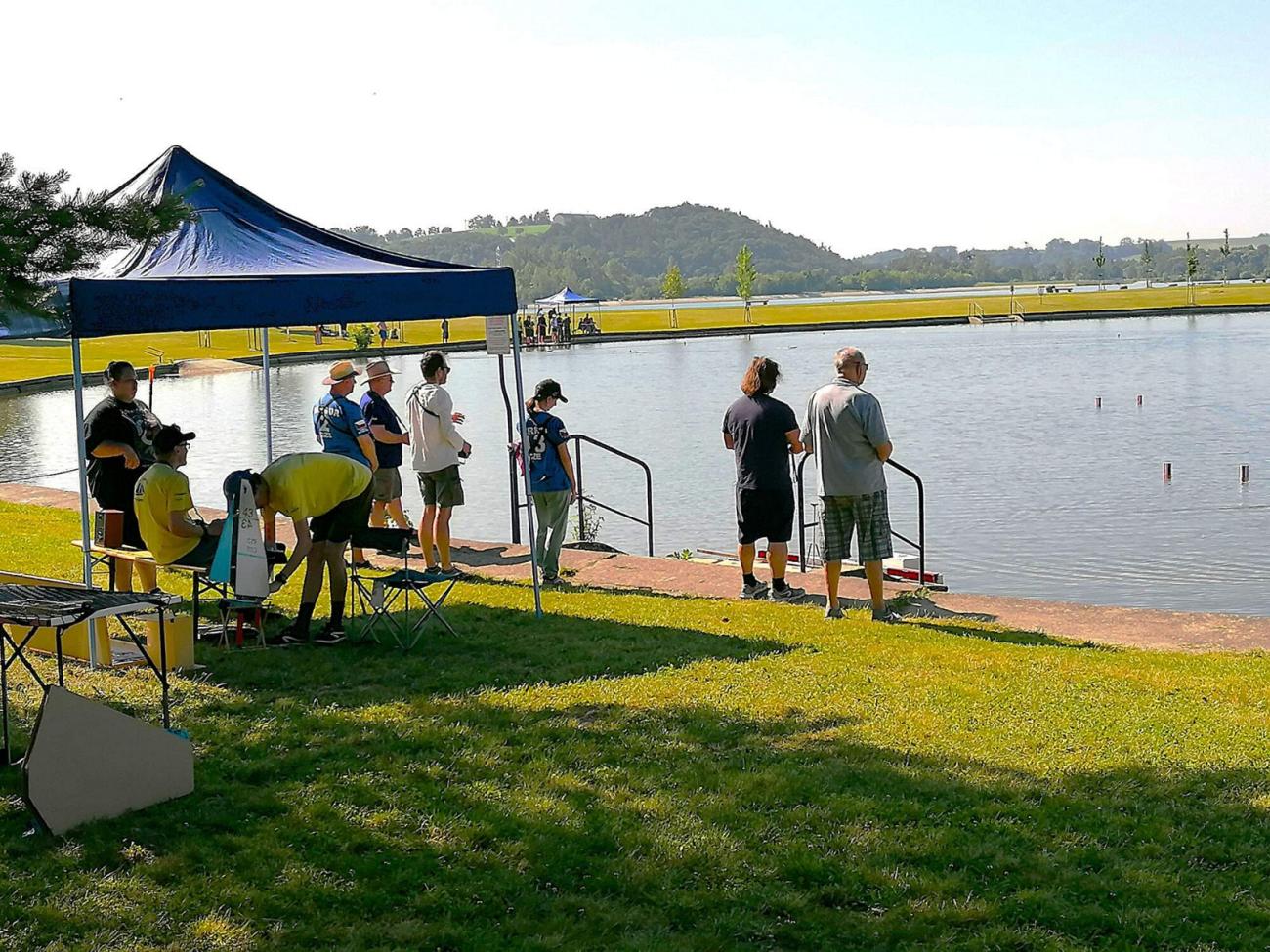 Díky otevírání koupaliště se u nás modelářů také zastavilo dost přihlížejících nebo procházejících návštěvníků kempu s dotazy na závody lodiček. Ovšem některé z nich nakonec odradilo zjištění, že tyto lodičky se v obchodech koupit nedají, ale že si je musí nejdříve závodníci postavit sami…