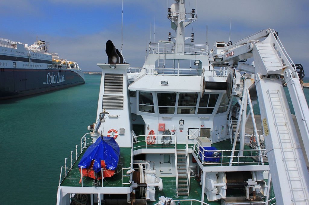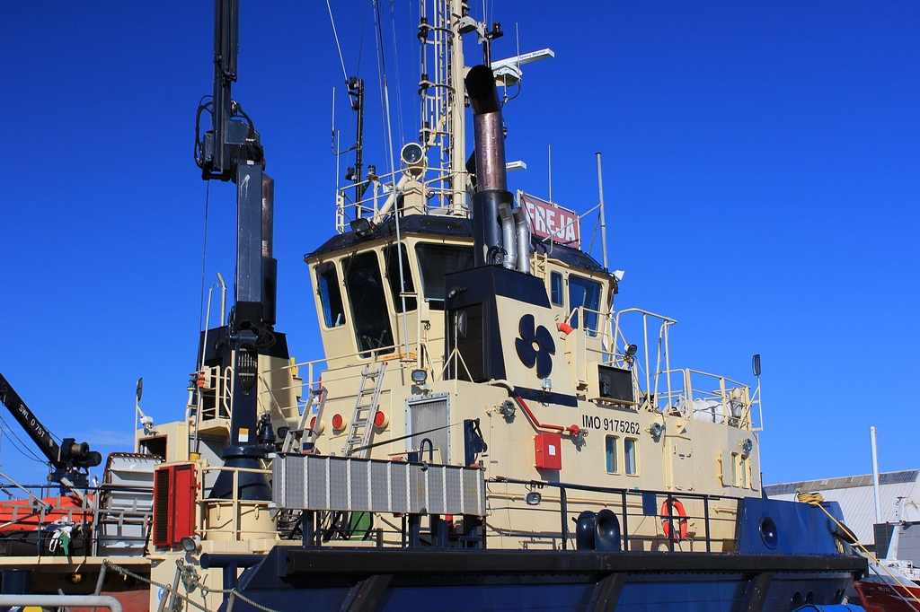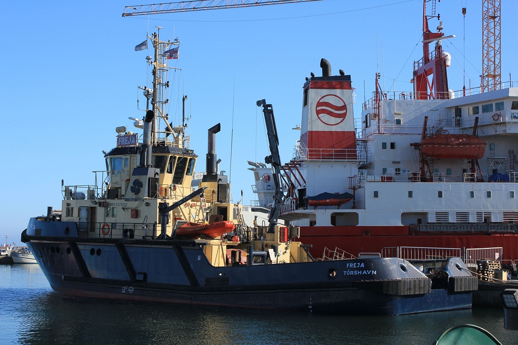 Procházel jsem molo a zahlédl další krásnou loď - remorkér Freja (IMO 9175262). Odvážil jsem se i do prostor, kde na vratech byla cedule, ze které bylo patrno, že je vstup zakázaný. Ale když vrata byla otevřená a za nimi zajímavé věci... Měl jsem s sebou teleobjektiv, takže jsem jej využíval. Byla neděle a nikde nikdo. Nevím, jak by to dopadlo, kdyby byl všední den a v loděnicích se pracovalo. Buď bych byl vykázán, nebo bych možná měl příležitost vidět více. Určitě by mi lákal remorkér Freja, byl opravdu zajímavý.