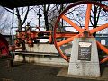Ale dále. Alespoň jsme si prošli plochu, nakoukli do asi tří stodol, a nakonec nám pán, který sekal trávu, nebo se spíš vozil na traktorové sekačce, otevřel další stodolu, co byla uzavřená obrovským visacím zámkem, a my jsme „čuměli“. Uvnitř se nalézal výkvět všeho, co se pohybovalo pomocí tlaku páry na píst. Podívejte se na obrázky té ocelové a litinové krásy. Americké stroje jsou trochu jiné než ty, co byly kdysi běžně v Evropě a někde i nyní k vidění. Zdají se mi delší, mají podivná kola z tyčí místo solidních loukotí, téměř bez výjimky mají přední nápravu s kulovým čepem. Jak jednoduché, předek kopíruje terén a bylo to opravdu domyšlené. Jeden lokotraktor měl dokonce i přední náhon. Na obrázku je vidět opravdový řetěz, řekl bych kotevní řetěz od malé lodě, samozřejmě od šmíru, a čtyřkolka byla na světě. Vesnický kovář asi dokázal tuhle věc opravovat bez specielních nástrojů.