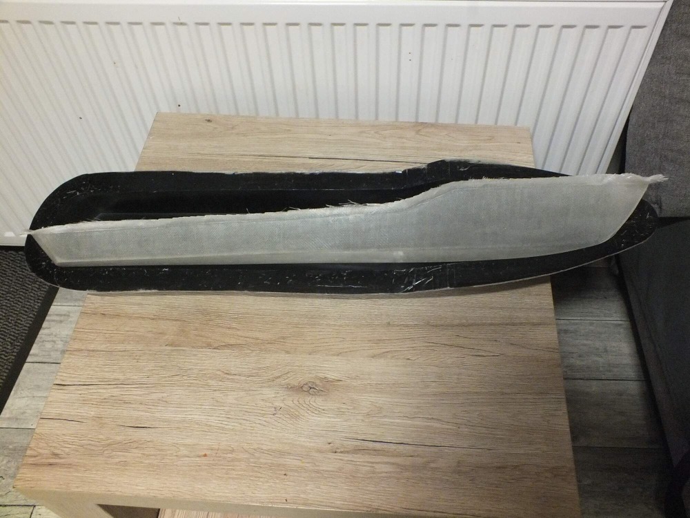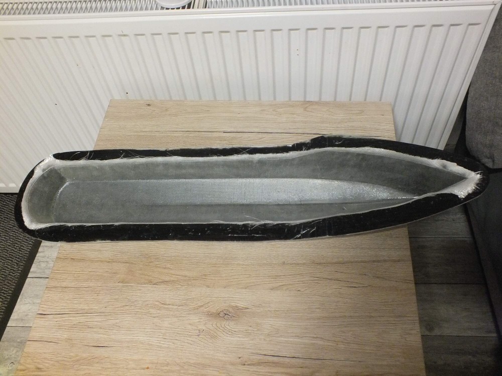 Před výrobou trupu natřu formu PVA, než zaschne, nařežu si skelné tkaniny 1 ks 50g, 1 ks 80g a 2 ks 160g. Nejdřív laminuji 50g, pak 80g a nakonec 160g. Strhovací tkaninu na žádost Zdeňka jsem nedával ani nevakuoval. Po 3 dnech jsem trup vyndal, šlo to velice snadno, tak i druhý trup. Kvalita, tuhost a váha trupu rozumná, nakonec o tom po dodávce trupů svědčilo i nadšení ve znojemské loděnici.