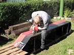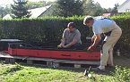 Prázdniny skončily, poslední soutěžní setkání v tug towingu taky a tak jsem se rozhodl, že je čas přikročit k činnům. Antemu, Nexovi, Ivvovi a RomanoviT jsme napsal k čemu se chystám a zda mi přijdou pomoci. Jedinej RomanT měl dost odvahy nás nechat bez dozoru. Prostě přijet nemohl. Čas zahájení prací jsem stanovil na desátou hodinu dopolední. Samozřejmě jak jsem předpokládal, v deset hodin jsem byl s vlekem na zahradě sám, ale během chvilky dofrčel Ivvo a než jsme si stačili uvařit kafe, seděl na zahradní lavičce pokuřující Nex a nadával, že musel tak brzo vstávat. Ante ohlásil alternativní příjezd a proto jsme dál nečekali a pustili se do toho.