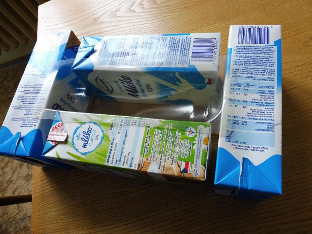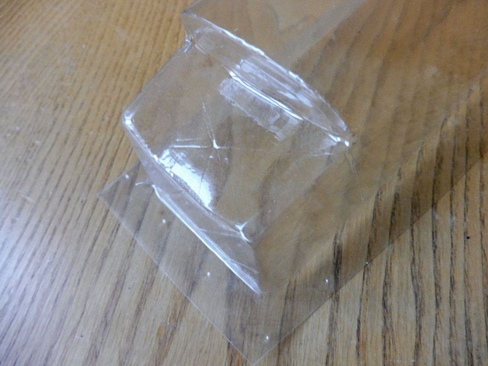 Vpravo je v ní odlité kopyto na vytažení předního dílu, viz foto trupu s kabinou, vytvrzené nátěrem vteřinovým lepidlem. Sokl byl dolit dodatečně a na fotce ještě není ořezán do šikmých ploch směrem k základně. Na odlití soklu posloužila jako forma krabička od sýru Lučina.