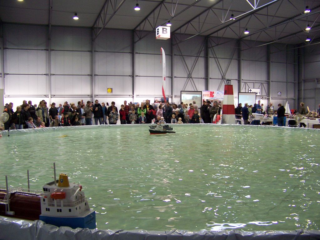 V pátek byl běžný pracovní den, a proto nás u bazénu mnoho nebylo. Navíc někteří využili příležitosti a jeli se podívat na Modell Hobby Spiel do Lipska. Kruhový bazén o průměru 15 metrů se tak stal jakýmsi mořem, kde se proháněly naráz průměrně tři lodní modely, což není mnoho. Pokud k tomu připočteme skutečnost, že jsme se o volné kanály po hodině dělili s automodeláři, pak náhodný návštěvník musel nabýt dojmu, že u bazénu chcípl pes. Jelikož se na společné prezentaci lodních modelů podílelo více klubů, tak jsme se k sobě navzájem pořádně ani nedostali a nějaké přeřvávání se přes celý bazén by nepadalo v úvahu.