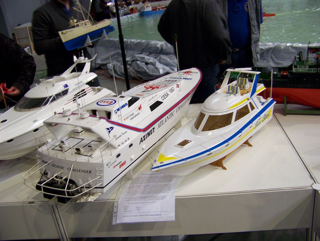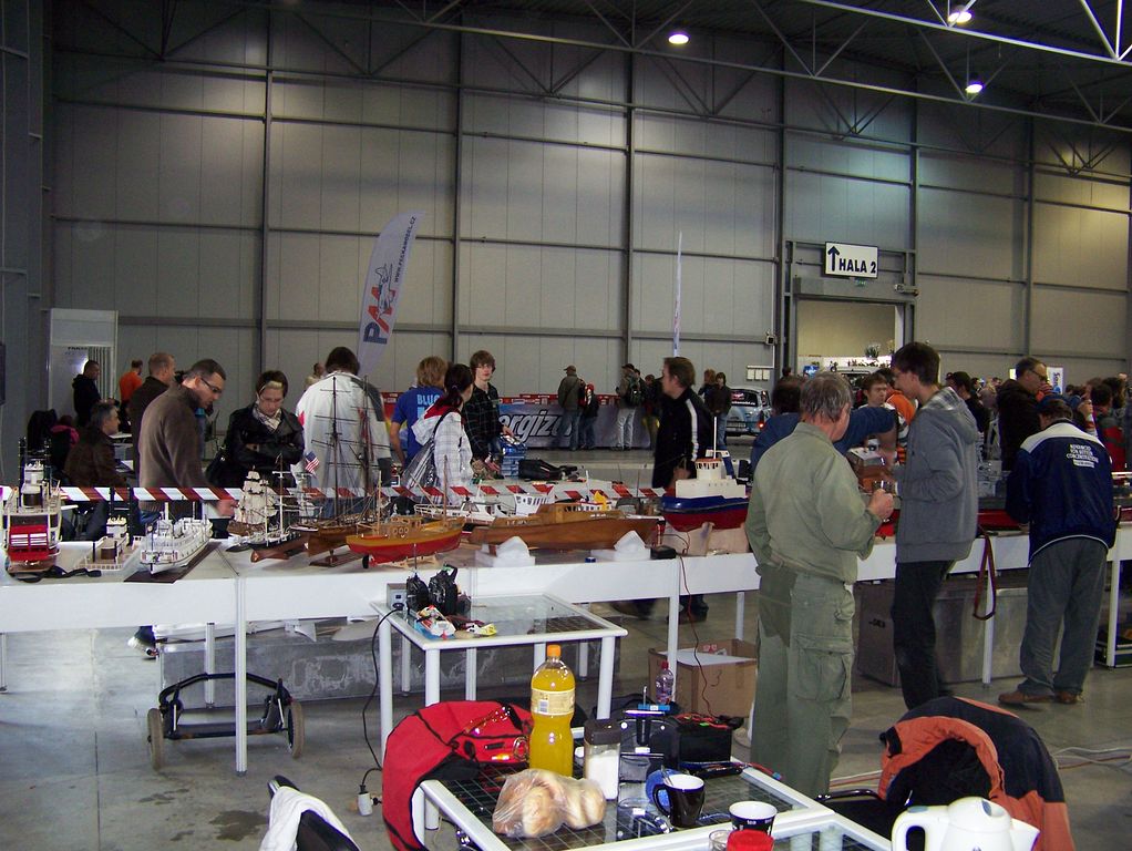 Ještě musím vzpomenout jednu drobnou podpásovku ze strany pořadatele veletrhu. Po celý pátek jsme vedle bazénu viděli nevyužitou plochu pro automobilové modely. Jaké však nastalo naše zděšení v sobotu, si neumíte představit. Celá tato plocha se totiž proměnila v závodiště, kde automodeláři pořádali své závody za doprovodu hlasitého ozvučení, čímž komentář dění u bazénu zanikal, což by bylo to nejmenší. Daleko horší bylo to, že automodeláři své depo přitiskli až ke stolům s lodními modely, čímž se k polovině z vystavených modelů dostalo pouhé minimum diváků, kteří sebrali drzost a do malé uličky se procpali.