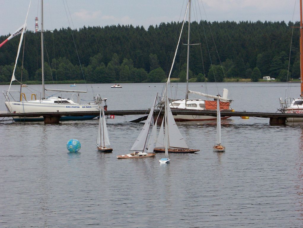 Čtvrtek byl ve znamení příjezdů, jelikož první soutěžní plavba byla na programu v odpoledních hodinách. Osobně jsem na místo dorazil někdy kolem druhé a ihned začal se skládáním Karl und Marie (dále jen KuM). Stihl jsem to akorát, abych nepřišel o start. Jelikož se sešlo nějakých dvacet modelů, tak bylo nutné sladit kanály. Ač řada modelářů přešla na 2,4 GHz, tak to byl stále docela problém. Ale povedlo se. Hurá na start.