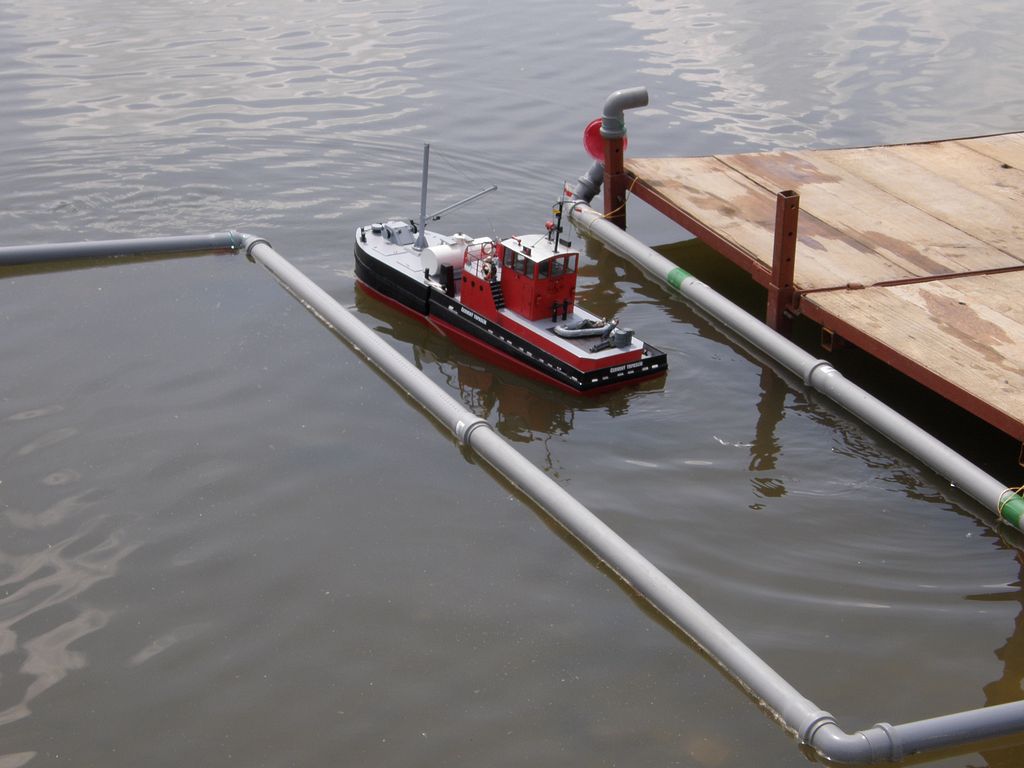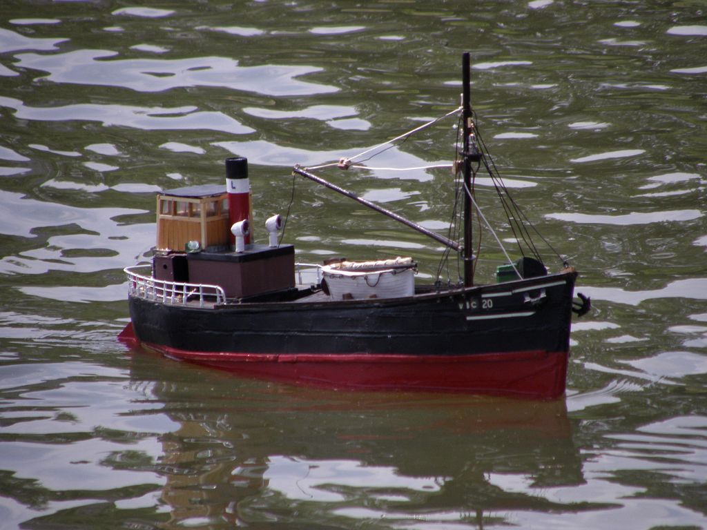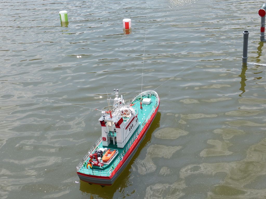 Jelikož jsem byl v minulém roce kritizován, že je průplav moc daleko od břehu, nainstaloval jsem jej poblíž mola tak, abych si vystačil s broďáky. Liboval jsem si, jak jsem to hezky udělal, avšak jen do prvních soutěžních jízd. Modeláři s metrovými modely měli potíž na tak malém prostoru manévrovat.