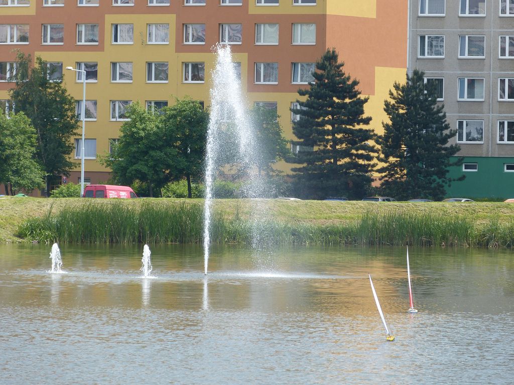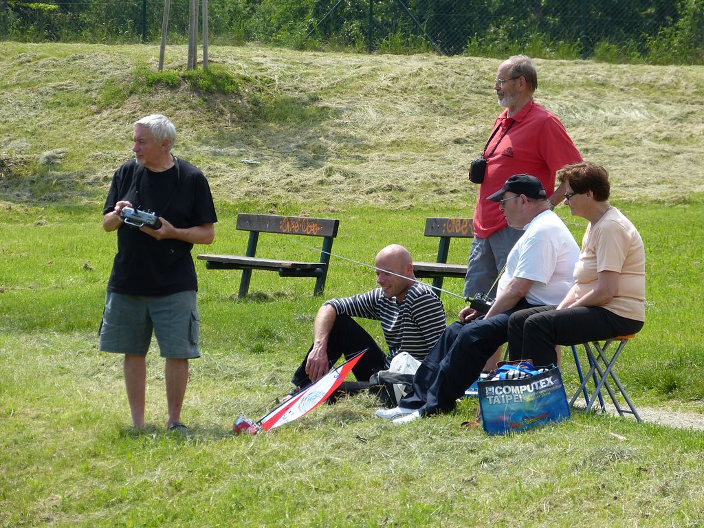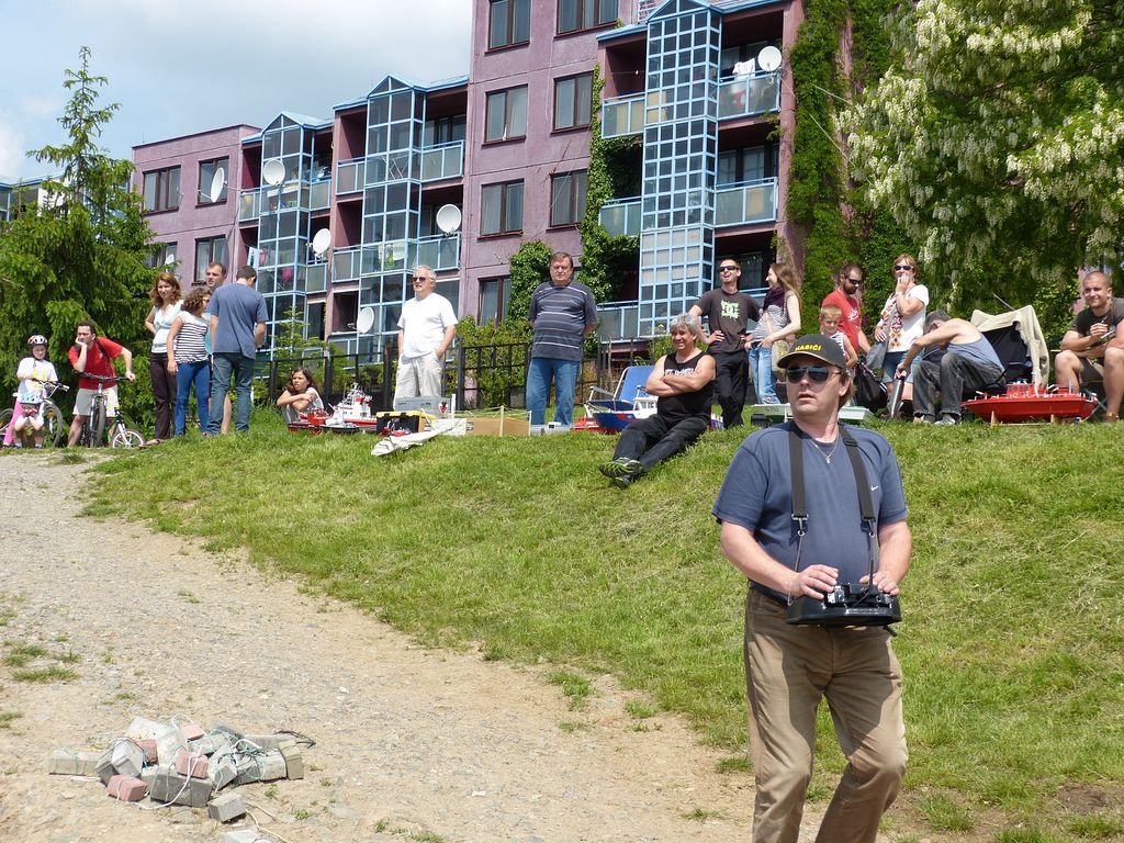 Druhou překážku pak představoval místní ostrov. Ač se všichni báli, že skrz vrbu na model neuvidí, problémy se dostavily dříve. Již samotné přiblížení k ostrovu pro některé majitele 2,4 GHz znamenalo stopku, neb model přišel o signál. Jen ti šťastnější museli řešit i tu eventualitu, že na model přes ostrov neuvidí. Pak se z hloučku přihlížejících ozývalo: „Jeď rovně... teď doleva... doprava. Už se musíš vidět.“![]()