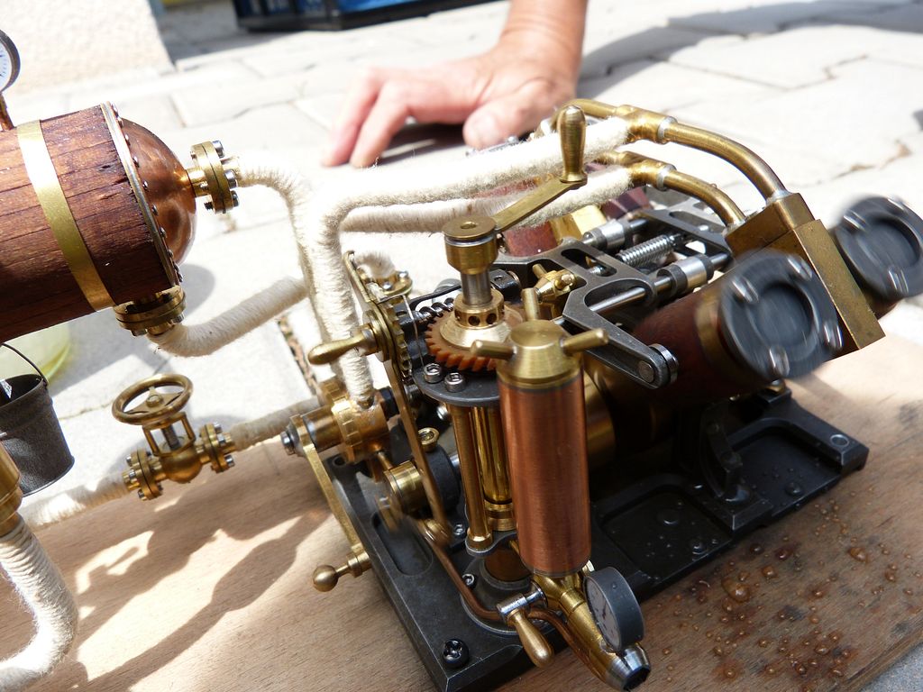 V sobotu jsme plachetnice vzali fofrem, a tak jsem mohl už v půl jedné okukovat snahy jiných maketářských ketegorií. To byl záměr, leč náhoda tomu chtěla, že jsem hned na první obchůzce narazil na nádhernou parní strojovnu, kterou přivezl Michal Šenekel z Desné (pokud jsem popletl jméno, tak se hluboce omlouvám). Strojařský skvost, který je zatím jen na prkně, podle majitele vznikal rok. Kdy se dočkáme zástavby do nějakého modelu, je zatím v nedohlednu, ale jednou to přijde. Toto parníkářské porno snad náležitě ocenili i ostatní maketáři, kteří cestou k vodě odkládali bedny s modely a šli pozorovat, proč se zde takový dav ohýbá až k zemi a fotí jako zběsilý. Kdyby bylo místo pro předvádění ve stínu, asi bych vydržel až do konce. Takto jsem po hodině a půl vzdálil opodál, zatímco Jiří Voráček nadále doloval rozumy.